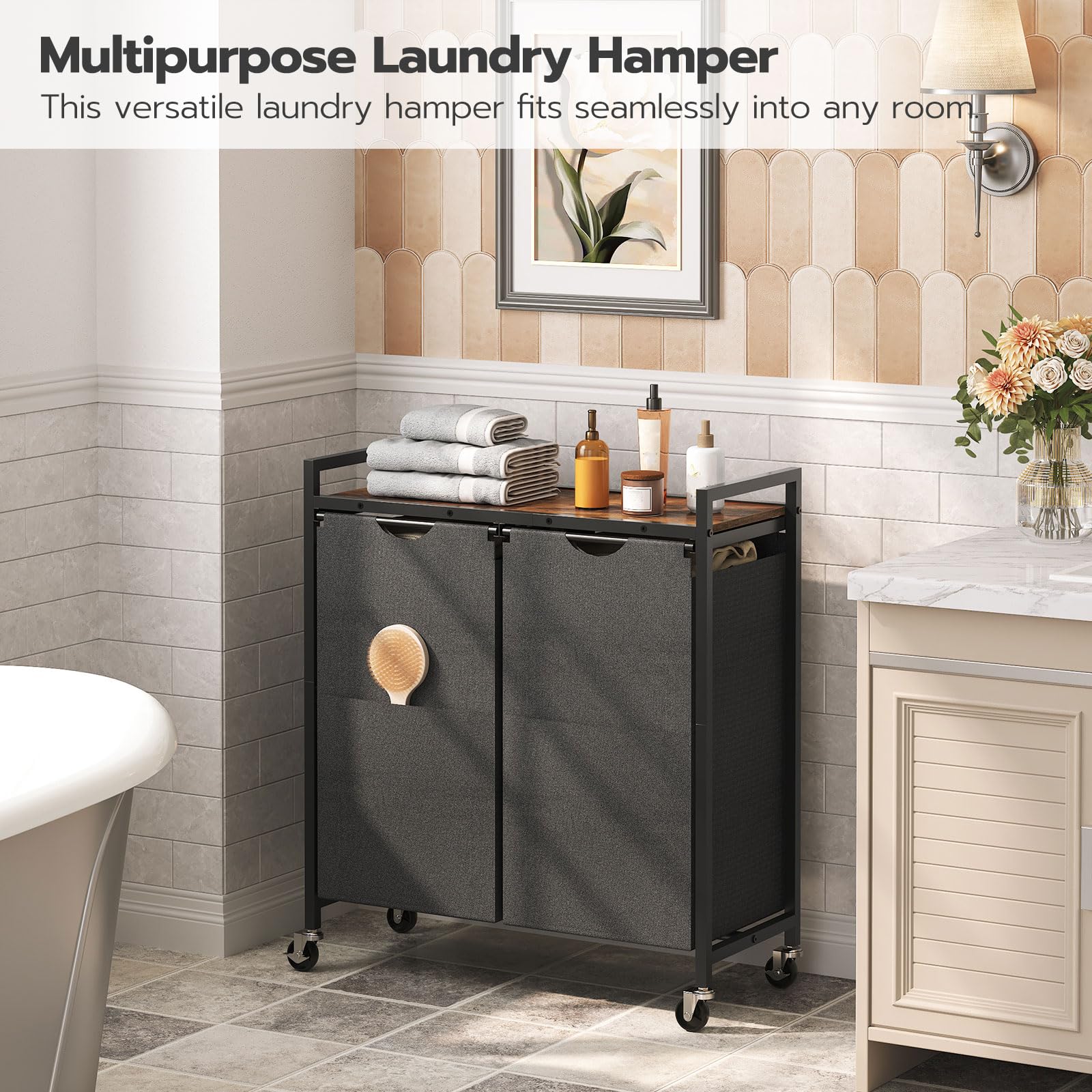 HOOBRO 2 × 13 Gallon (49.5 Liter) Double-Layer Sorting Roller Laundry Basket