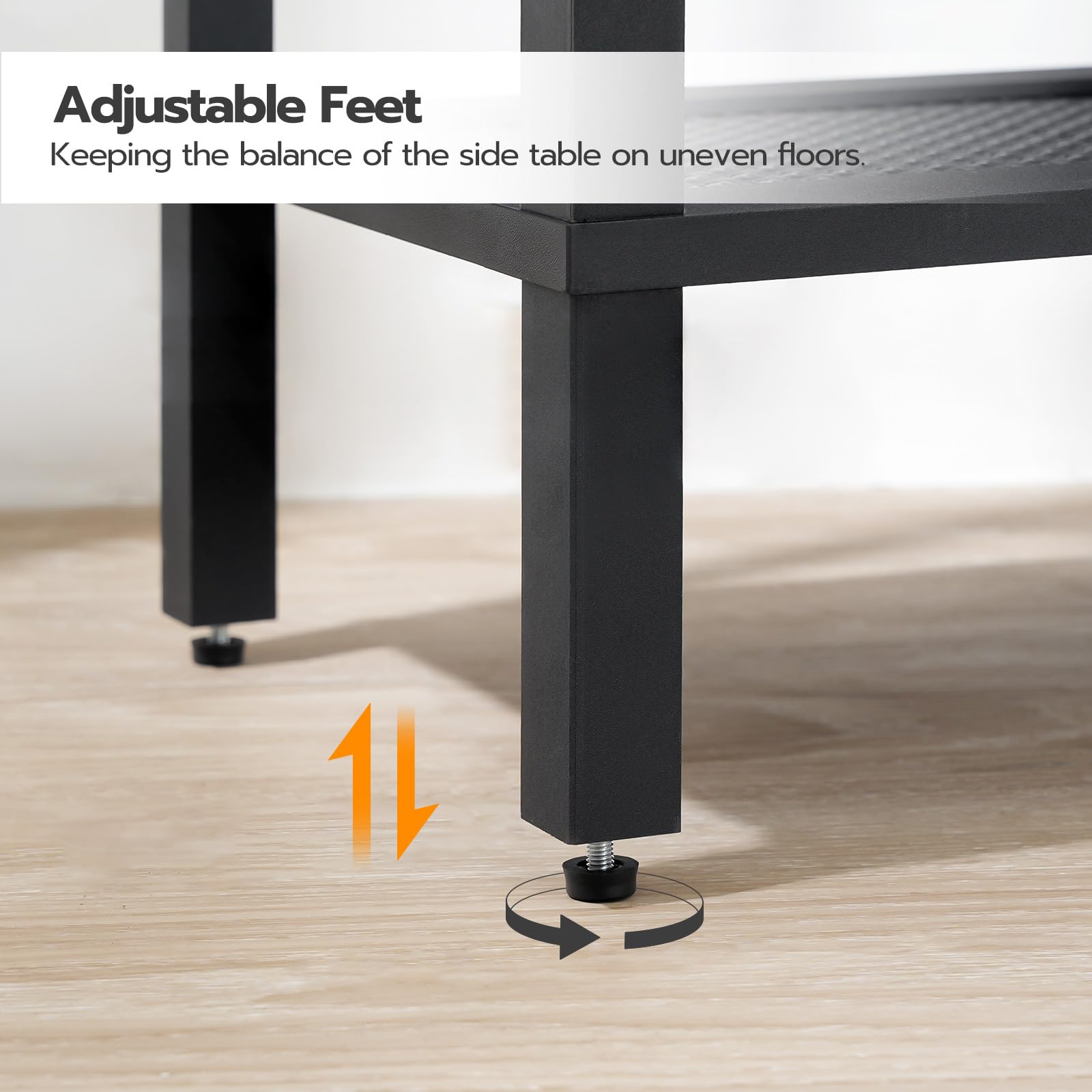 - Stable Structure: The beside table comes with 4 adjustable plastic feet to keep it balance even on uneven floors. They are suitable for all kinds of floors and can protect your floors from direct contact and scratches from metal feet