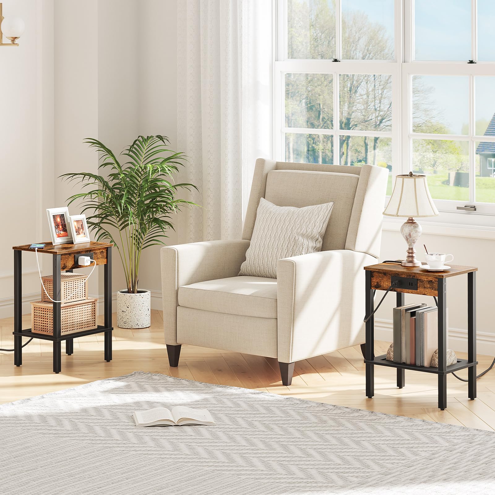 - Convenient Charging: Equipped with 1 AC outlet and 2 USB ports, this end table offers enough charging space for your electronic devices. You can charge phone, tablet or lamp without leaving your bed or sofa, and the trouble of finding plugs will never bother you again