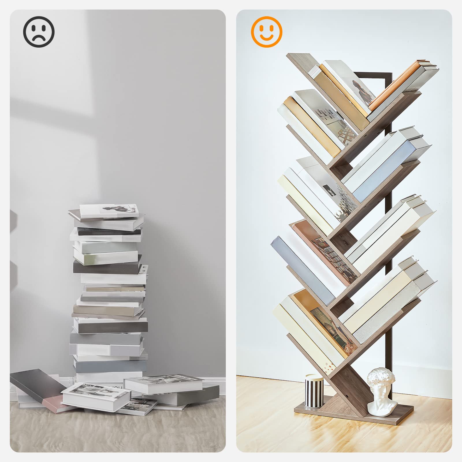 HOOBRO Greige 9-Tier Floor-Standing Wooden Tree-Shaped Bookshelf