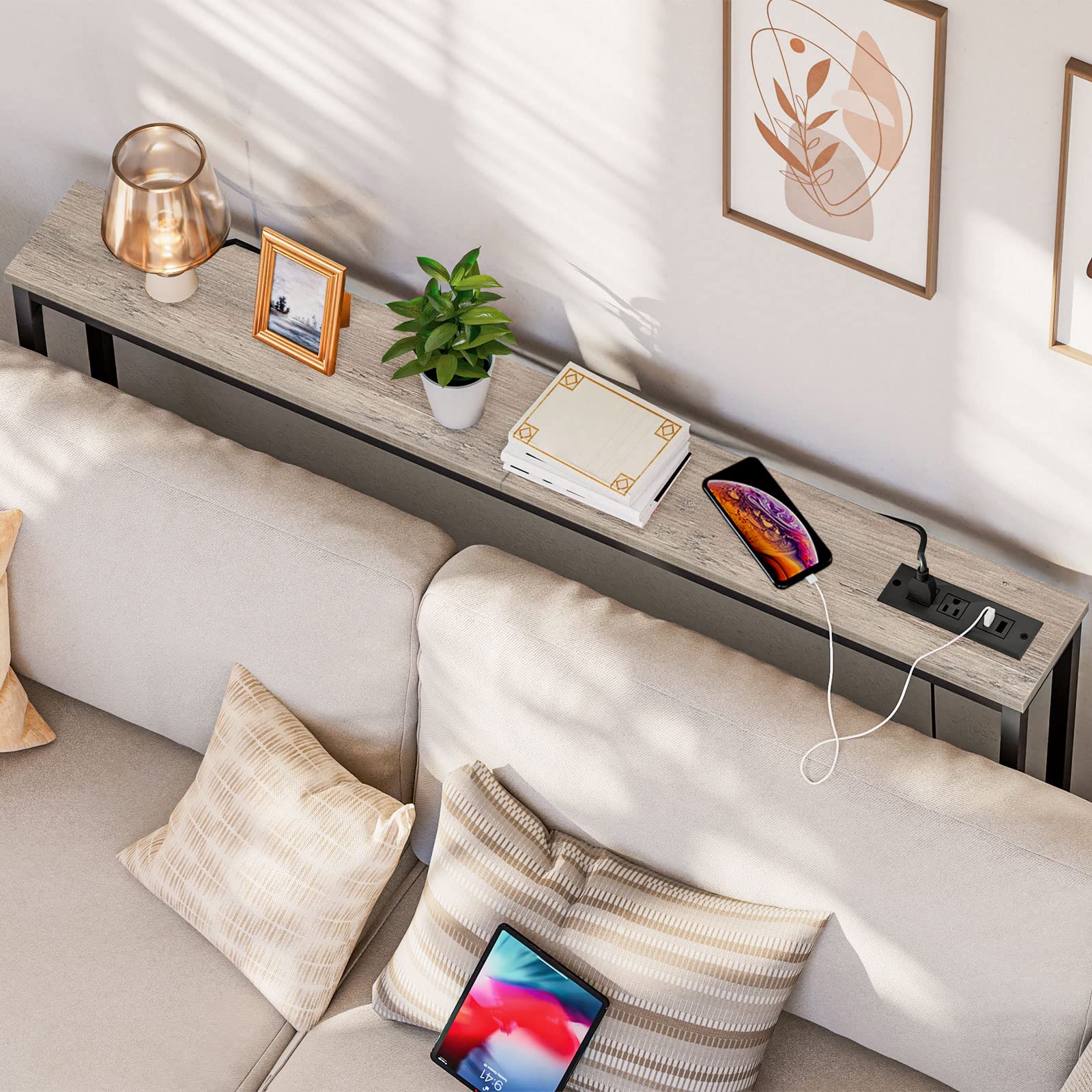HOOBRO Greige 47.2-inch Narrow Console Table with Power Outlet