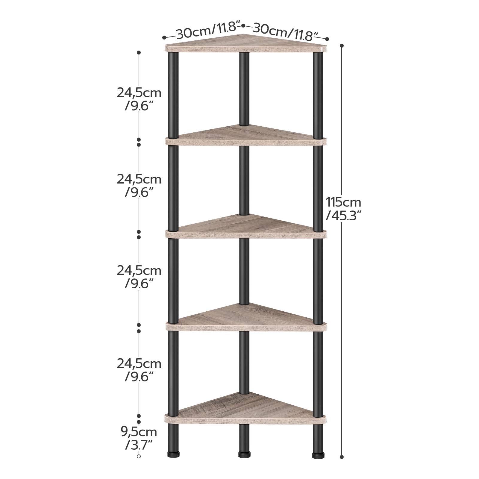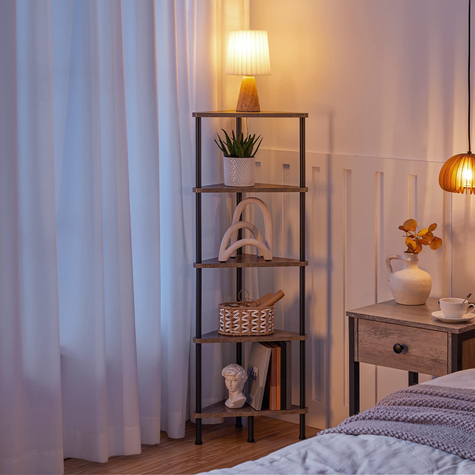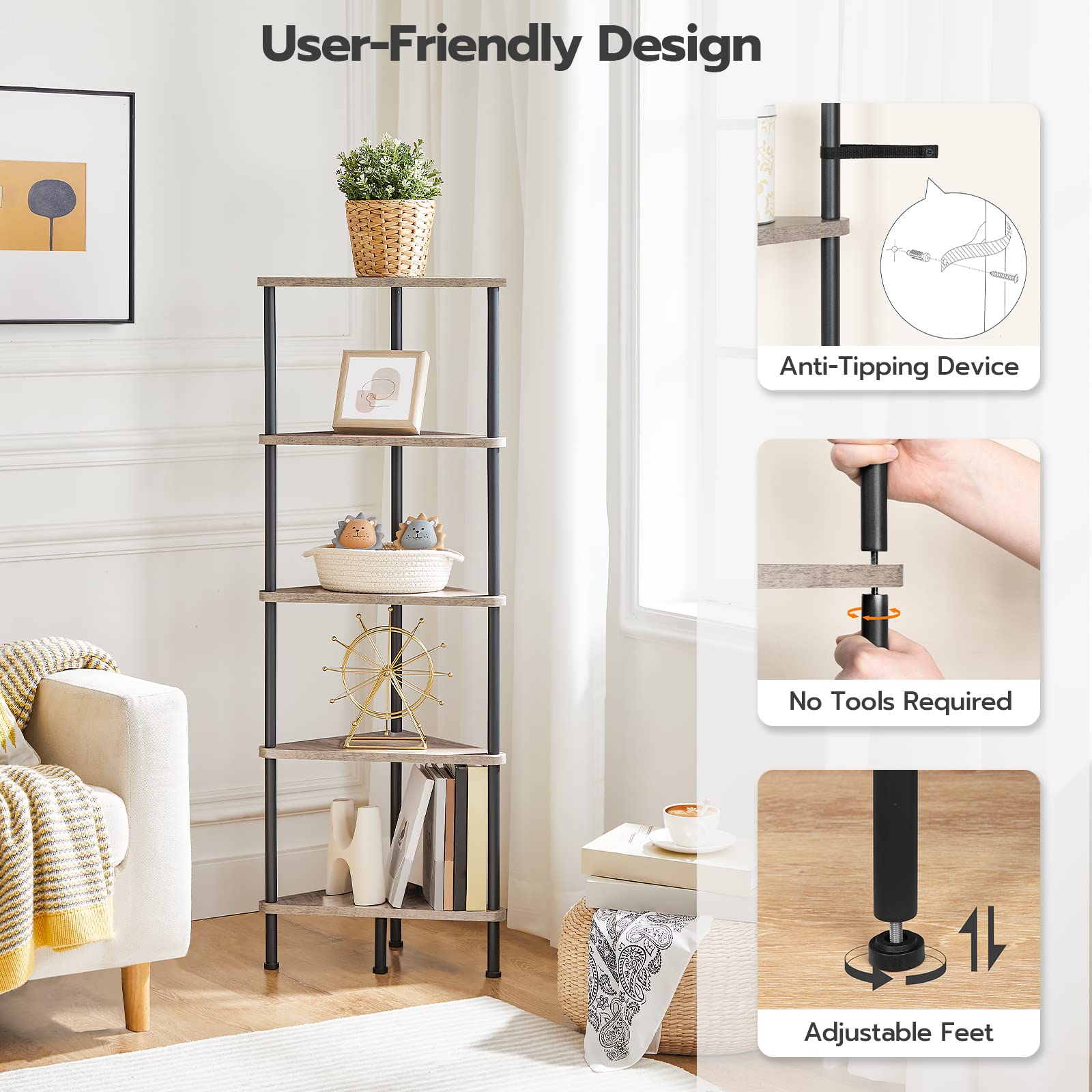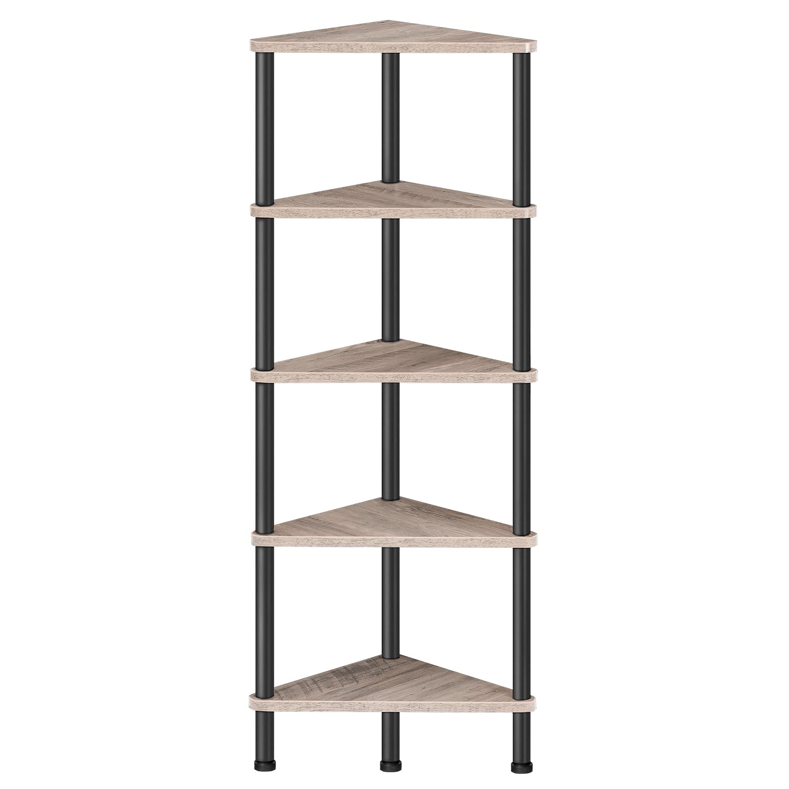 HOOBRO Greige Industrial Style Five-Tier Corner Bookshelf