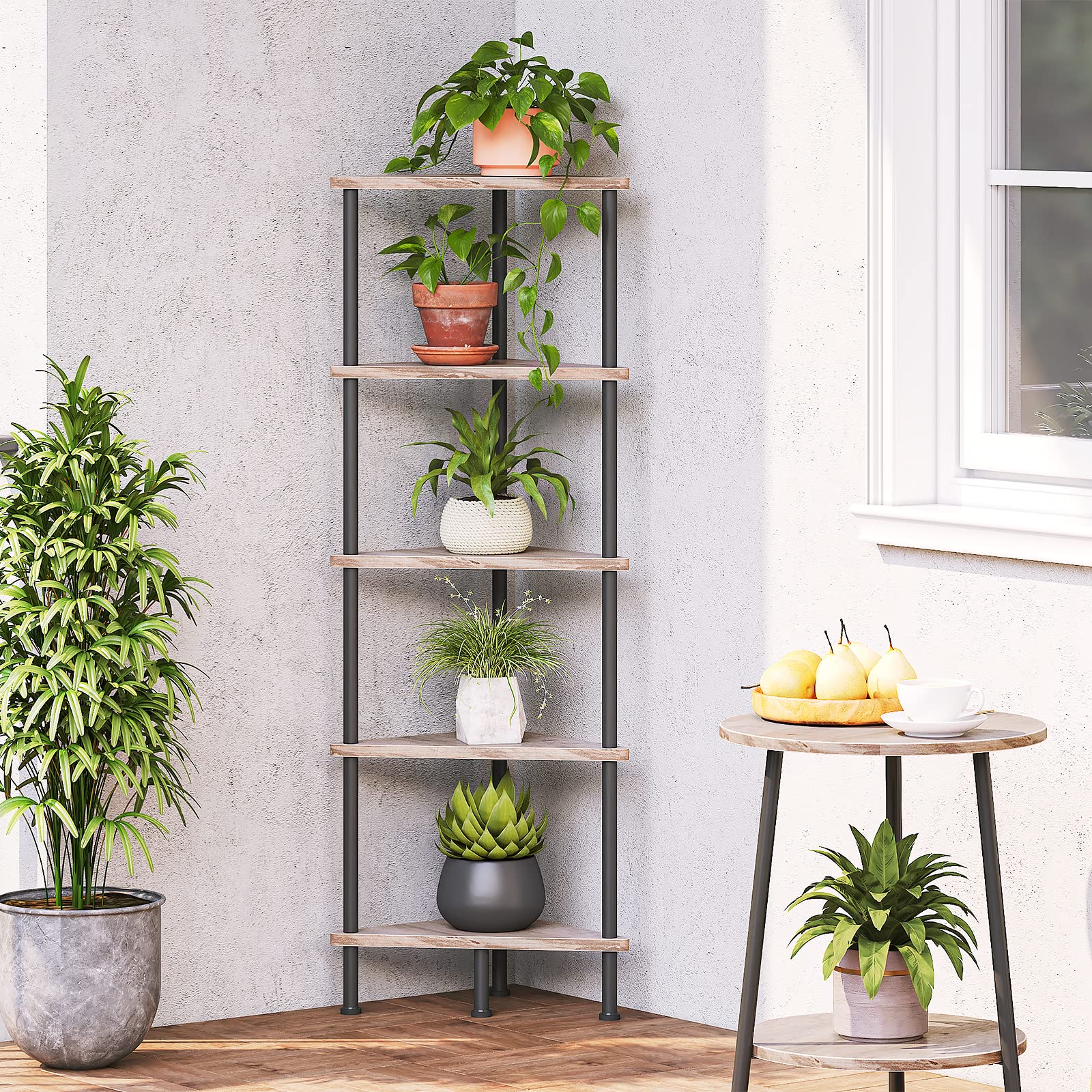 - Feature-Rich Storage Shelf: This storage shelving unit works well as the bookshelf, display stand or plant shelf in any corners in the living room, bedroom, home office, kitchen, corridor, balcony and bathroom etc. The considerate rounded edges of triangular boards are smooth to protect you and your family from scratches and the 90 degree right angle enables this ladder shelf to stand individually or play perfectly against the wall