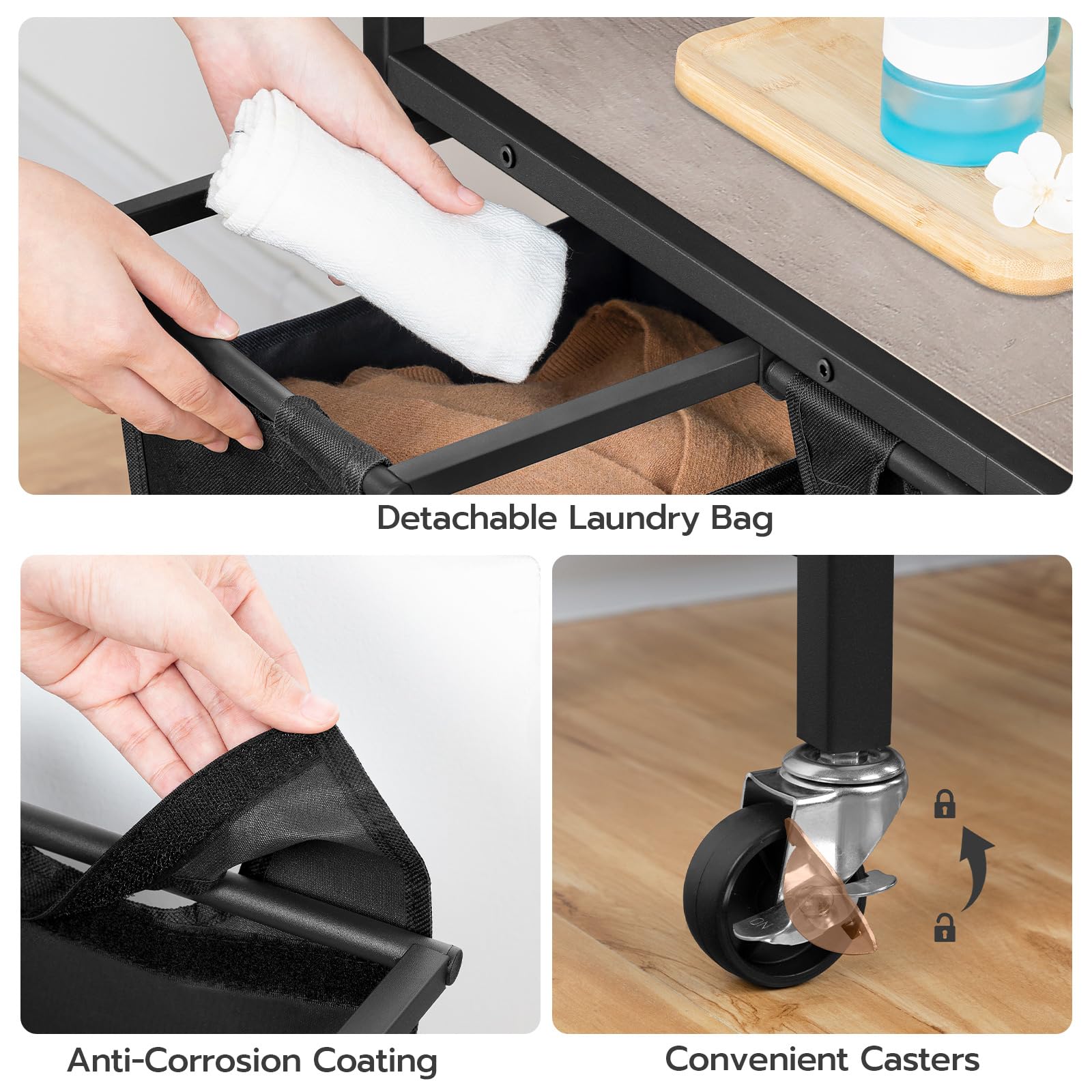 - Sturdy and Stable: Made of premium particleboard and thickened iron frame, this laundry hamper provides strong support. The shelf can withstand a maximum static load of 100 lb, while each bag can hold up to 30 lb