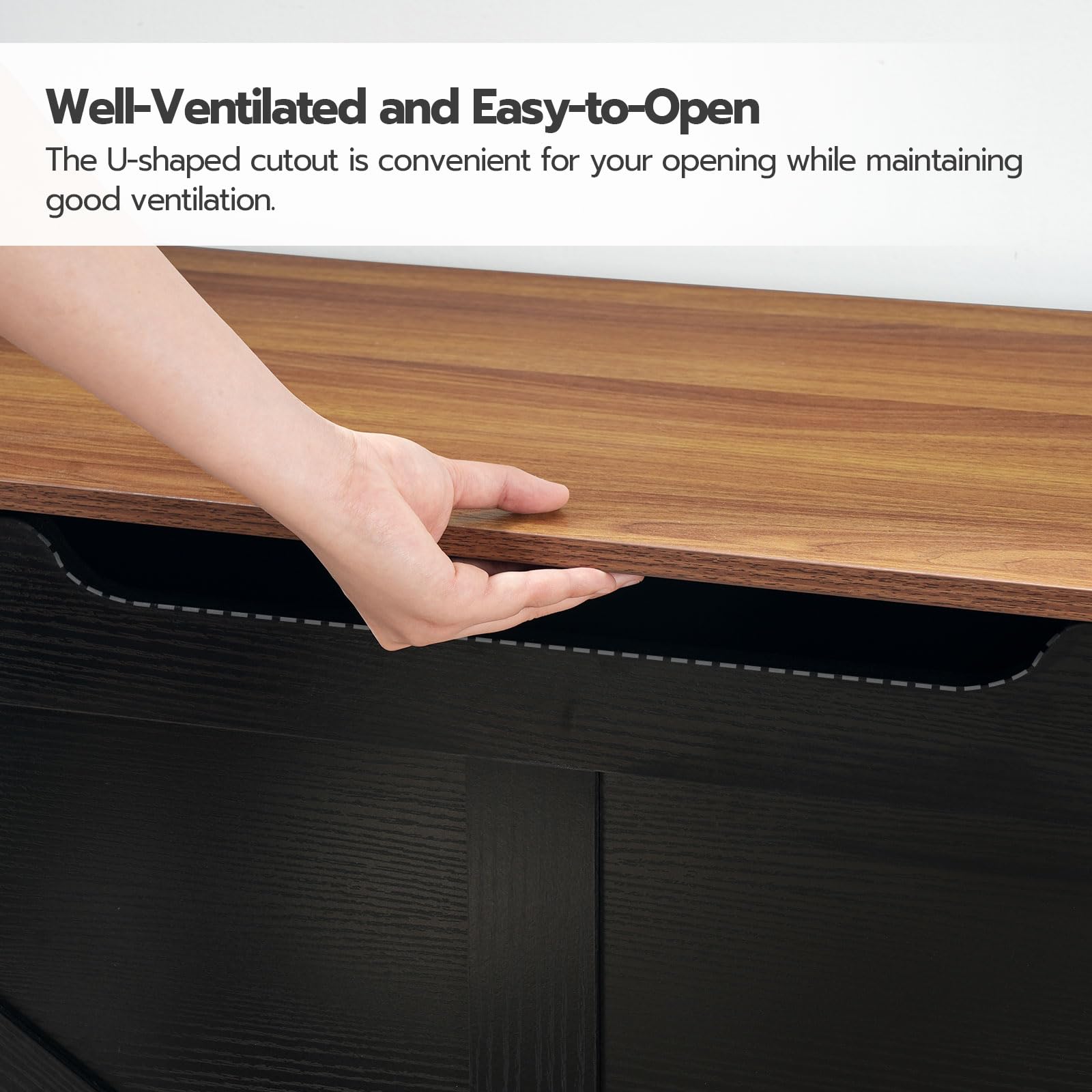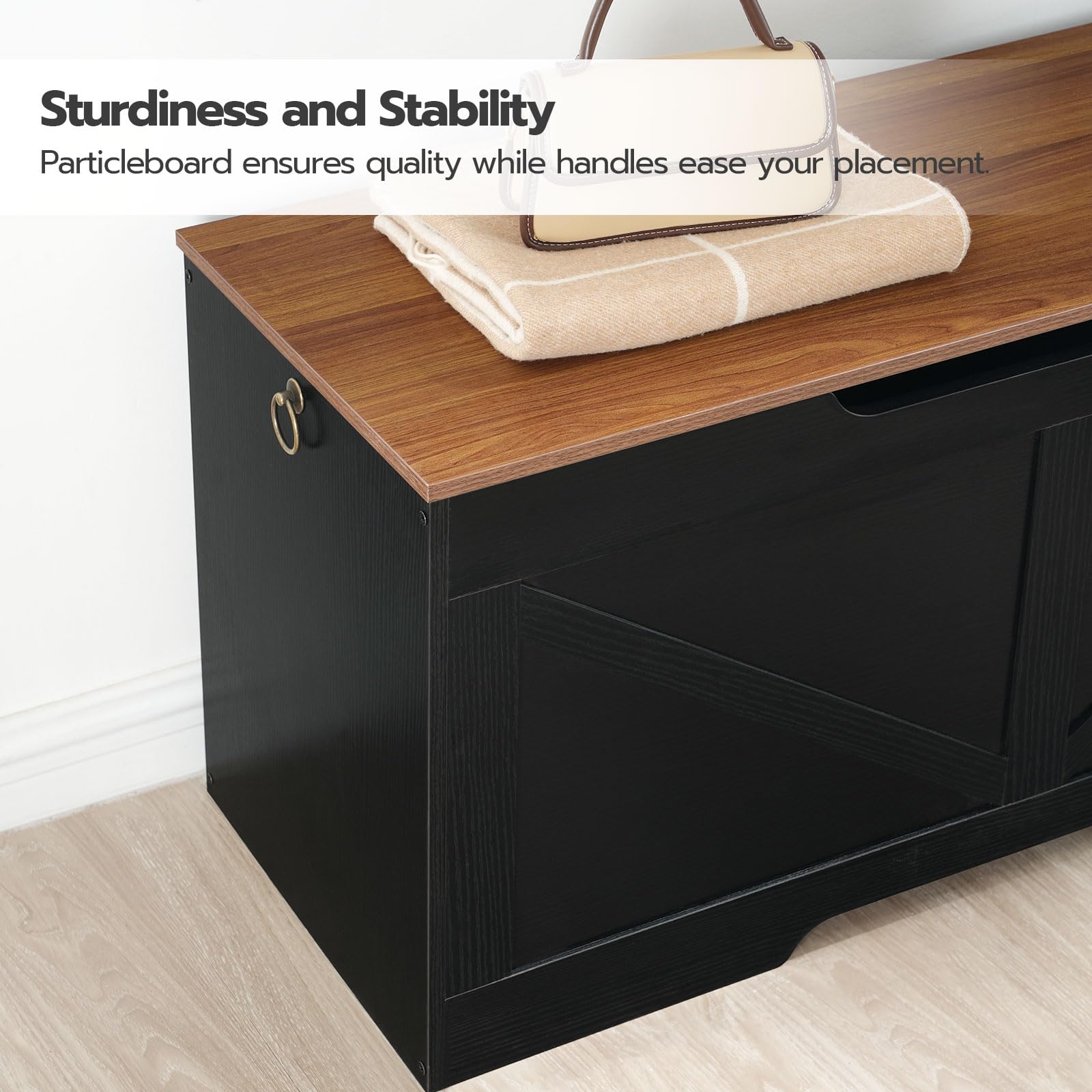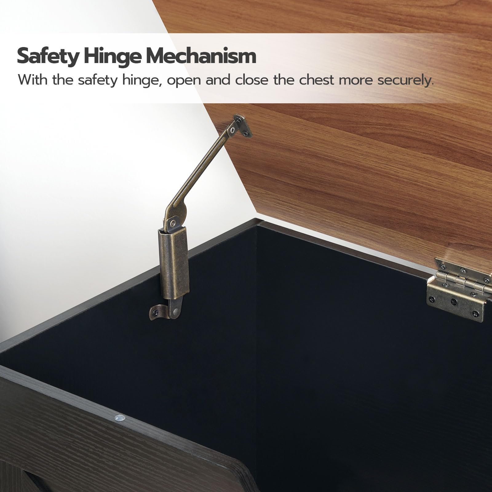 - Functions: This toy chest has a basic design with a black and walnut look that is ideal for creating a welcoming and comfortable environment. It has a storage compartment that can be utilized as a bedside stool, toy box, shoe bench, storage bench, or storage chest