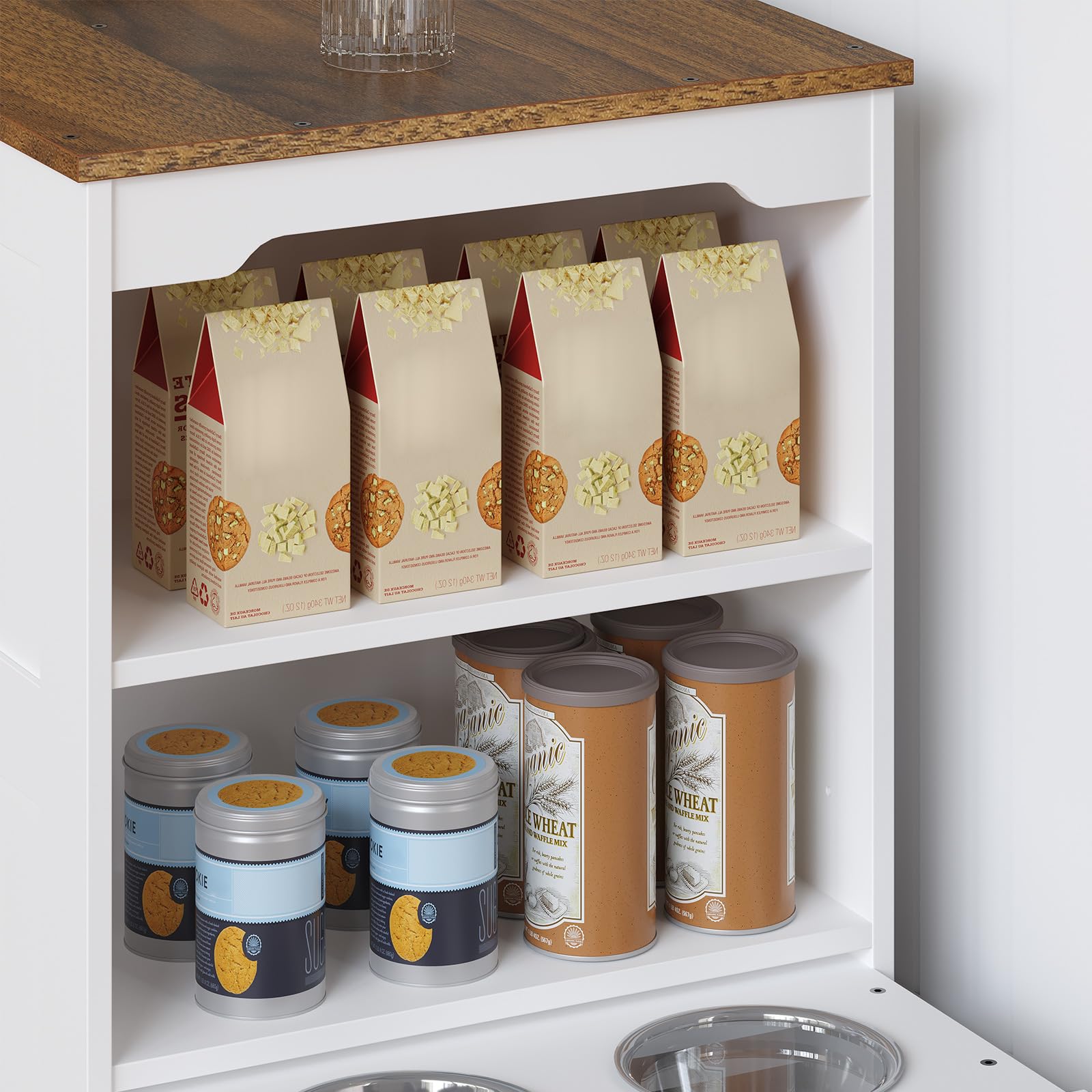 - Spacious Storage: Measuring 35"L x 21.7"W x 28.3"H, this dog crate furniture includes 2 storage compartments on the right for pet supplies and a generous top. The pull-out feeding tray below conveniently tucks away when not in use to save space