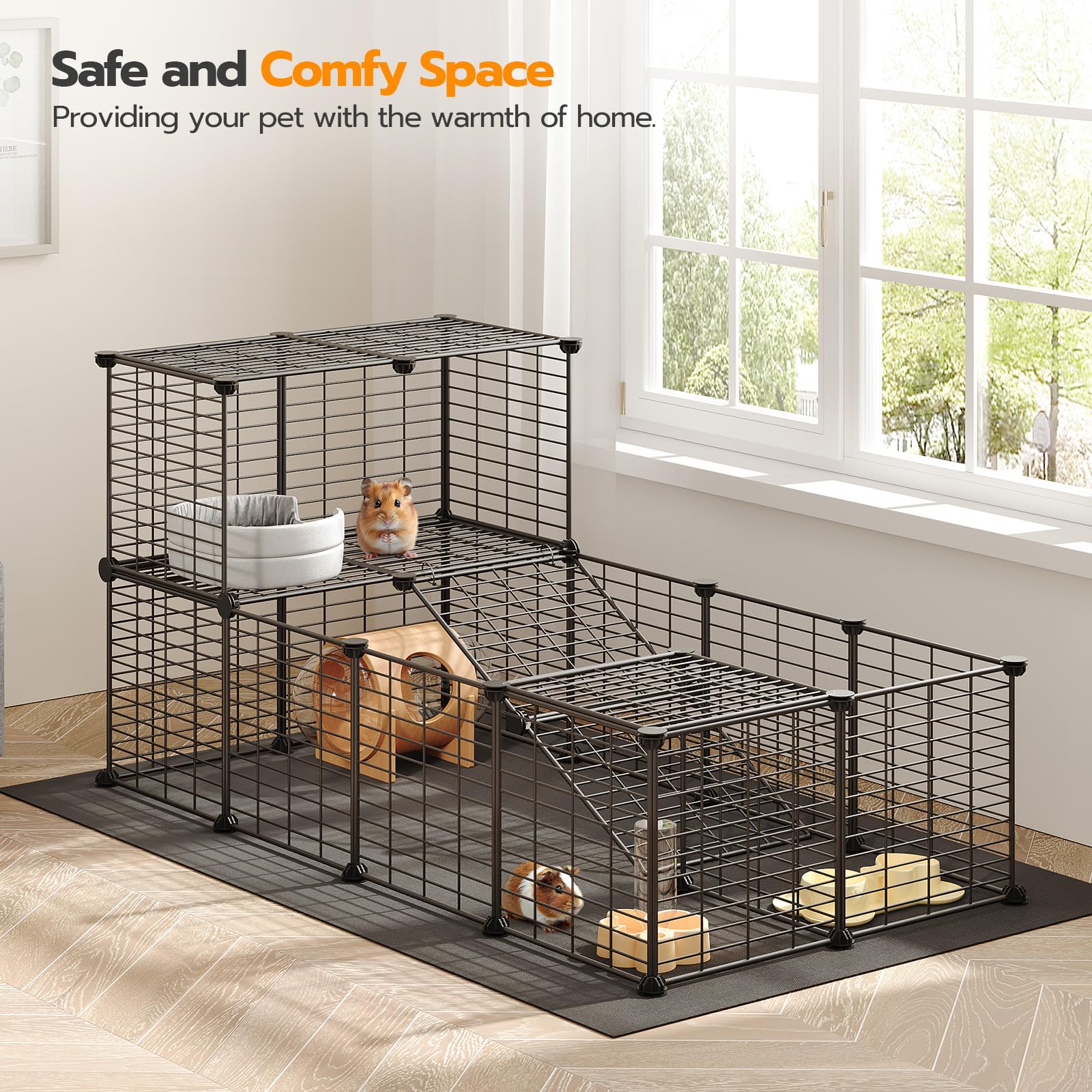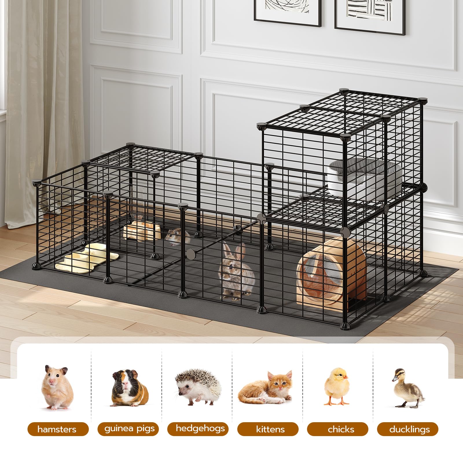 - For Various Small Animals: Ideal as Midwest guinea pig cage, rabbit playpen, bunny pen, puppy pen, kitten playpen, cat playpen, dog fences indoor. It is also suitable for pets such as ferret, rat, hamster, hedgehogs, little duck and little chicken.You can easily see them from any angle and stay interactive with the furry guys
