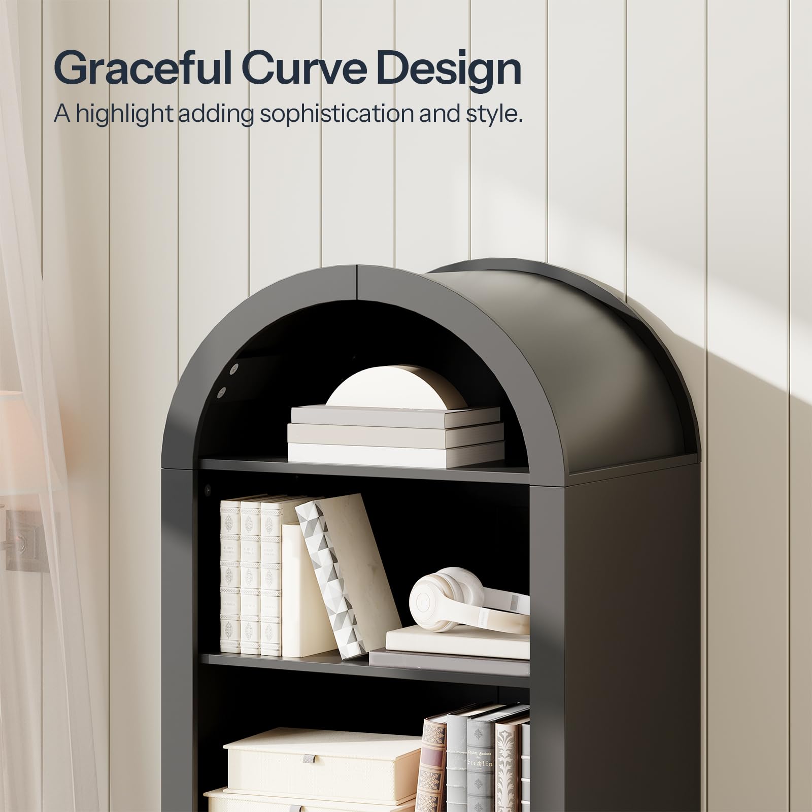 - Flexible Adjustable Shelves: The tall arched bookshelf's open shelves with varied spacing allow organized storage and display of different items. Two adjustable shelves let you customize the layout to suit your needs and make efficient use of space