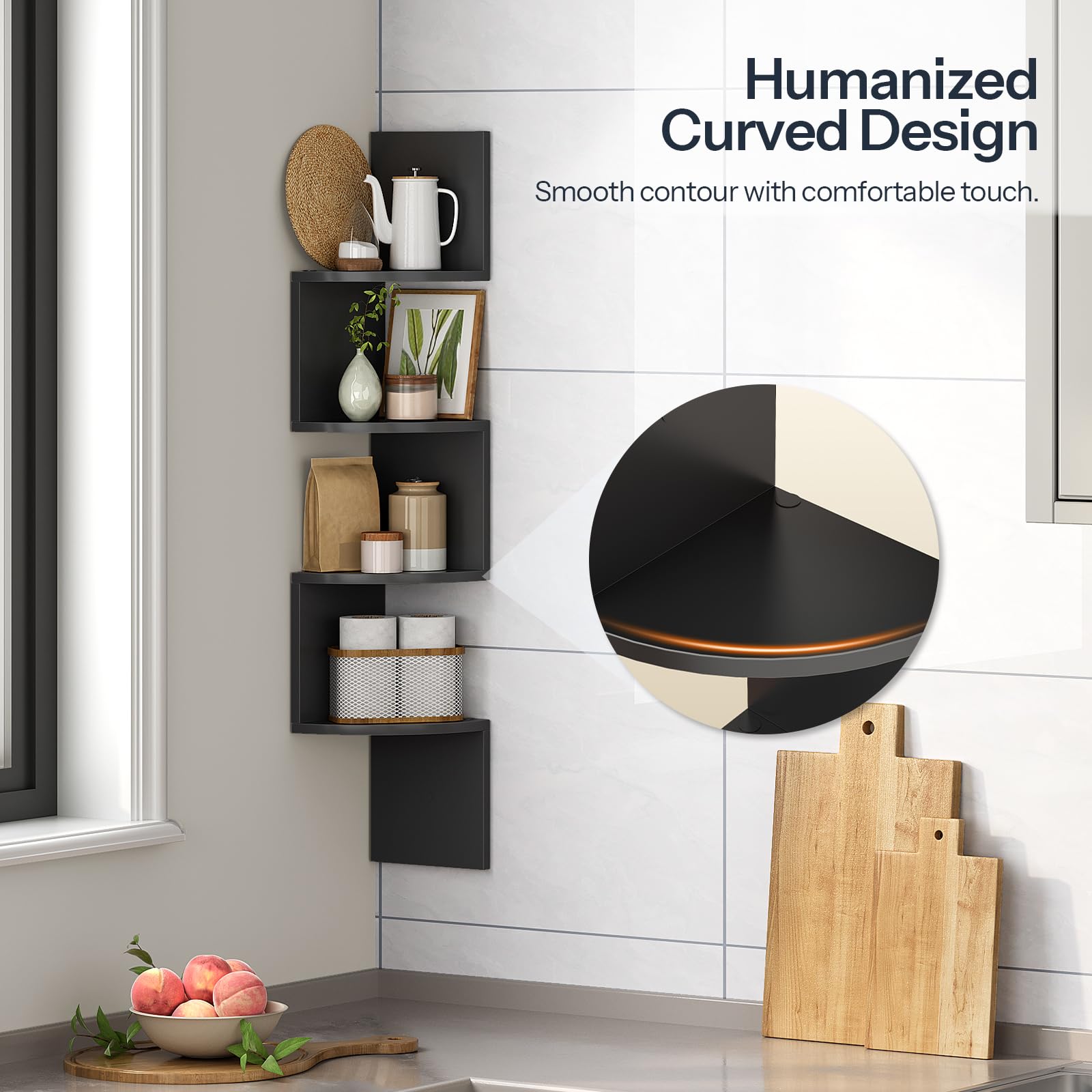 - Modern Style with Functionality: This set of 2 floating corner shelves wall mounted incorporates a zigzag design with curved shelves, exuding a strong rustic charm. This corner shelves for wall is a decorative and practical storage solution that adds a unique touch to your living room or office