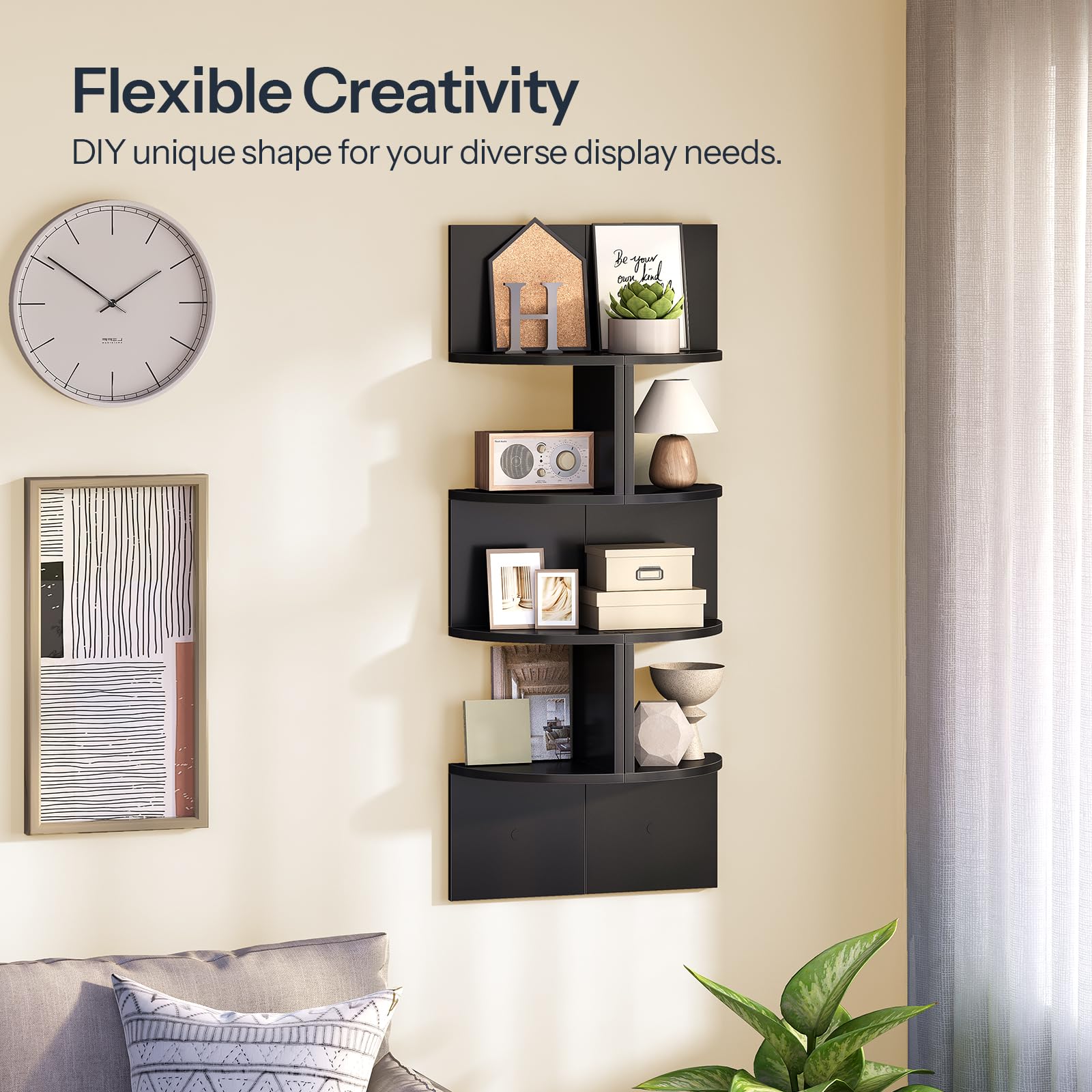 - Versatile Duo for Flexible Configurations: This 4-Tier corner shelf wall-mounted offers flexibility to suit your needs. Whether it's for display in your living room, bedroom or for storage in your study, this set of 2 floating corner shelves creates a more organized space and enhances your lifestyle