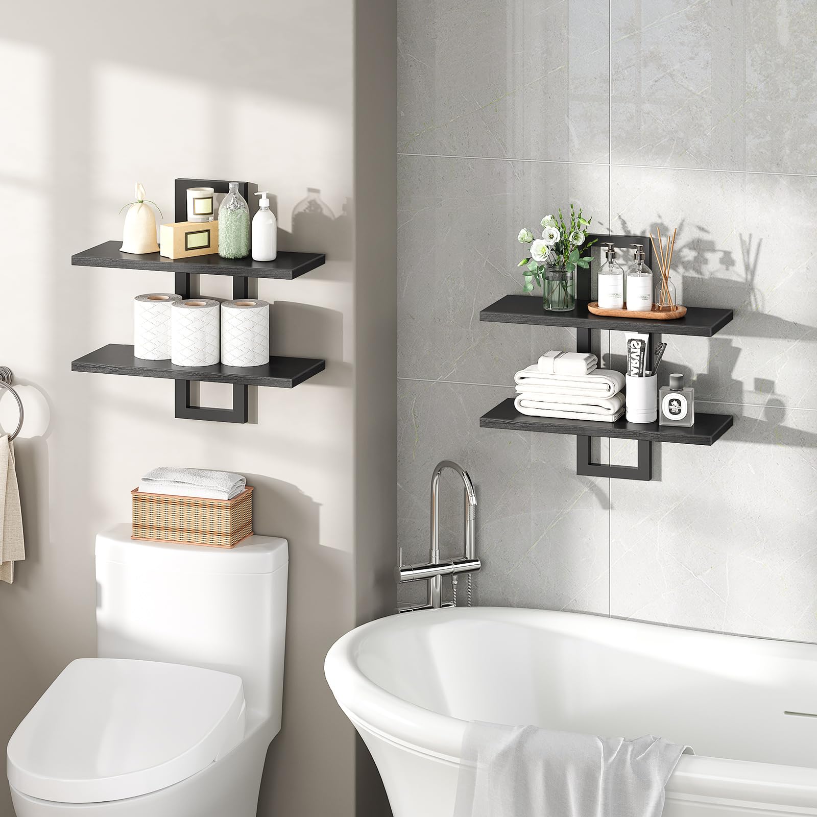 - Free Placement: This simple floating wall-mounted shelf set comes with 2 types of expansion screws, suitable for both concrete walls and hollow walls. With the detailed assembly instructions and tools provided, the bathroom shelves can be quickly assembled and put into use