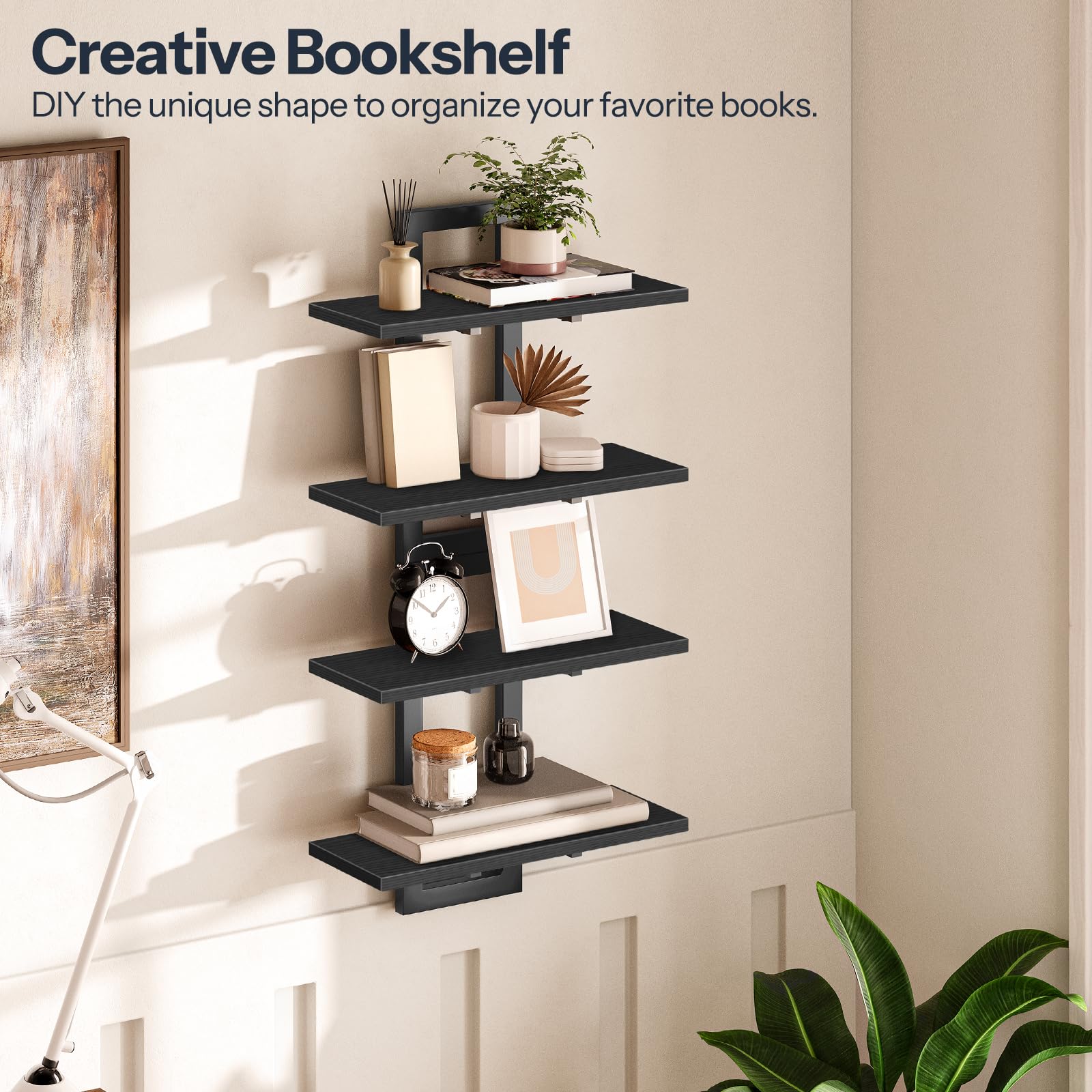- Sturdy and Durable: Each wall mounted shelf is made of high-quality particleboard and sturdy metal frames, ensuring stability and durability. It can bear a weight of up to 40 lb, easily accommodating various daily items and decorations