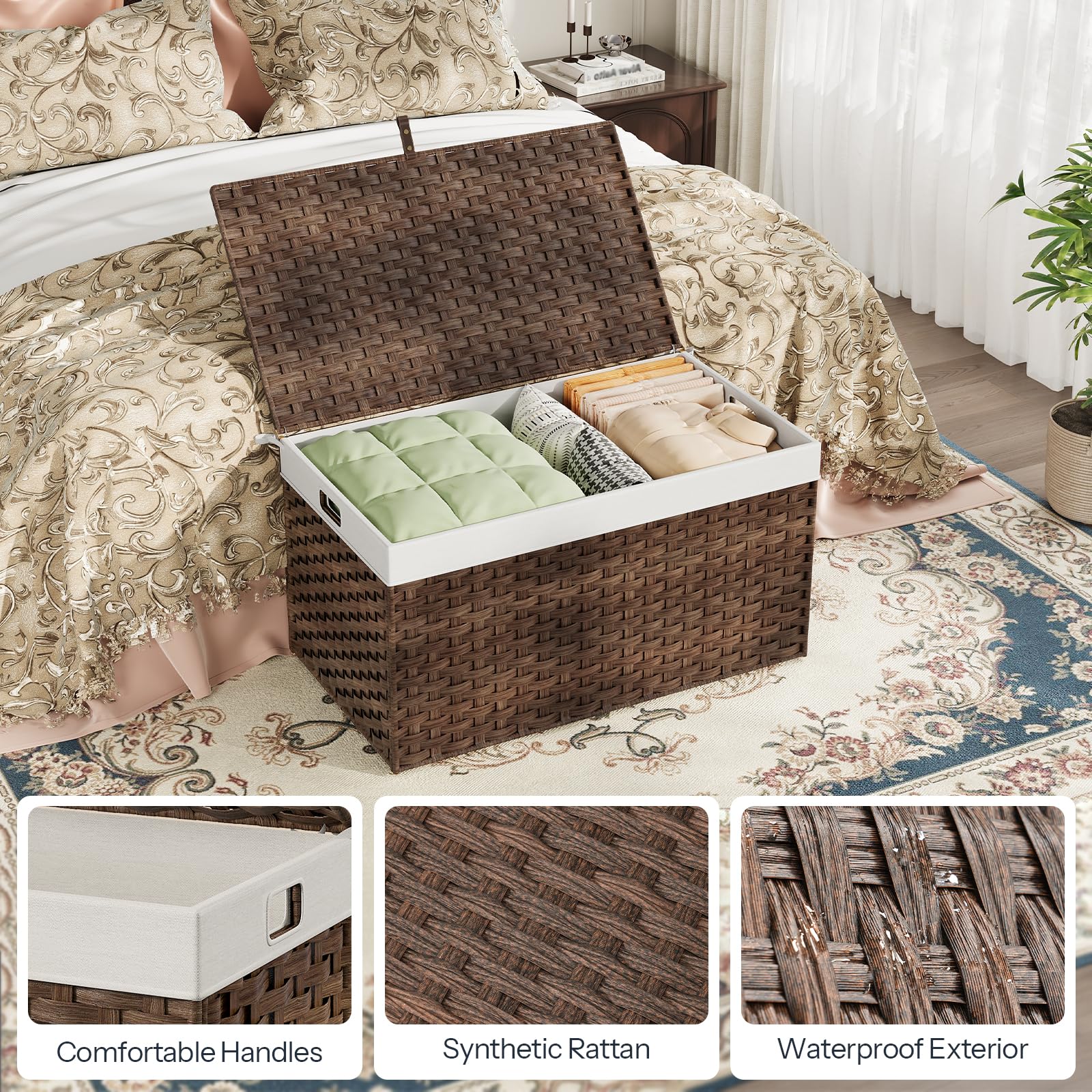 - Ultra-Spacious Storage: This 160L storage basket is a clutter-buster for bedrooms, etc. Its full-open lid lets you swiftly grab or stash clothes and blankets. No more messy chaos; it turns your space into a neat, organized haven