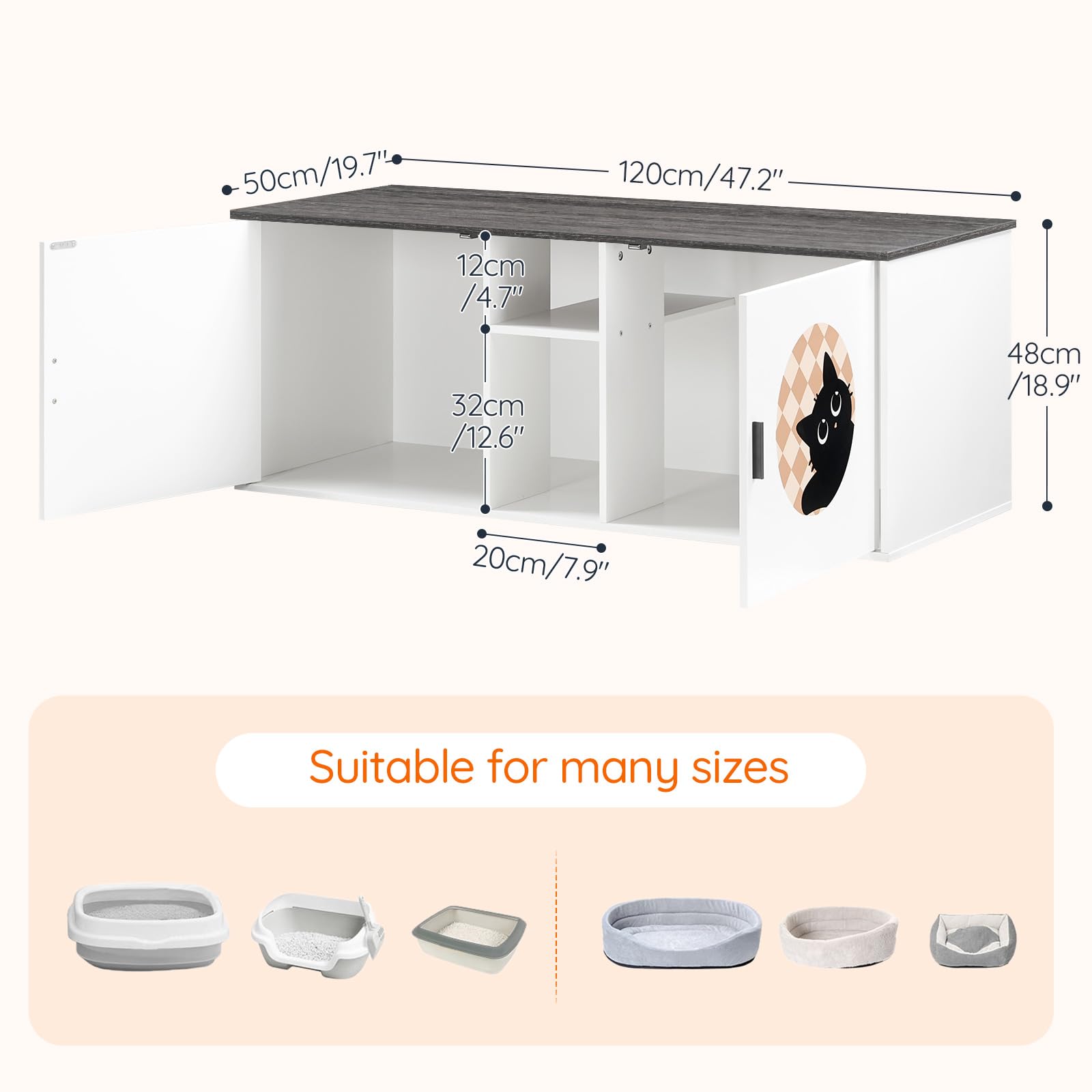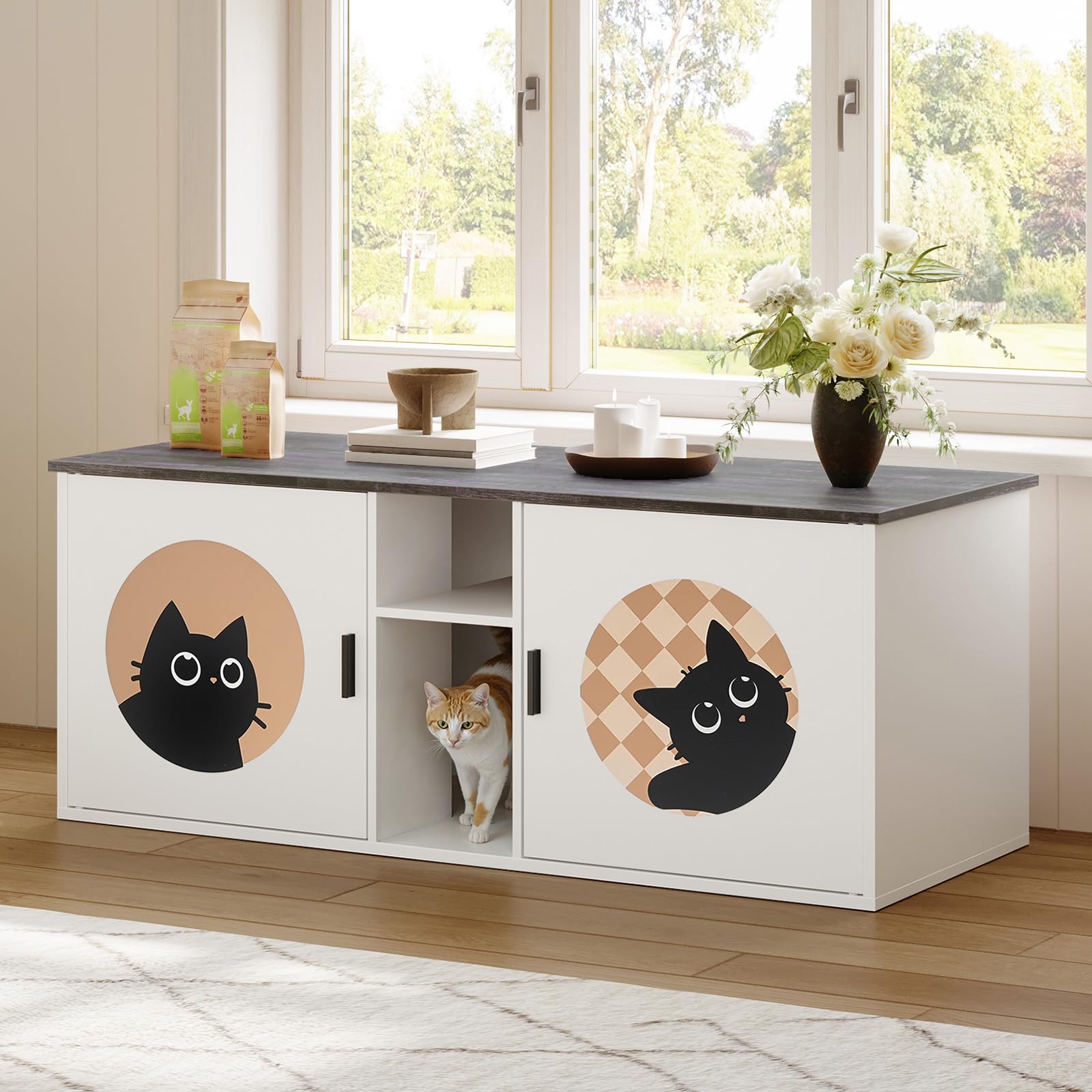 - Charming Design Accents - Adds Personality to Your Home: With cute, playful printed patterns on the doors, this litter box enclosure brings personality and character to your space. Subtle yet fun, these details create a warm, welcoming atmosphere, making the 2-litter box cabinet feel like a natural, charming addition to your home.