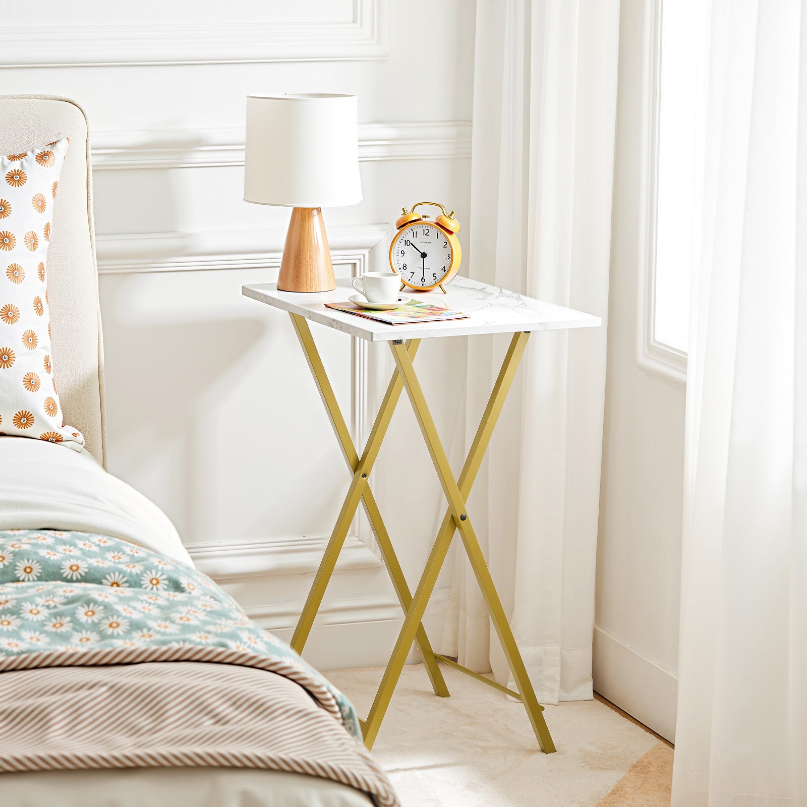 - Marble Design: At first glance, you won't be able to take your eyes off this TV table's captivating modern style. If you're looking for a sturdy and durable metal-framed folding TV table, this product will perfectly meet your needs.