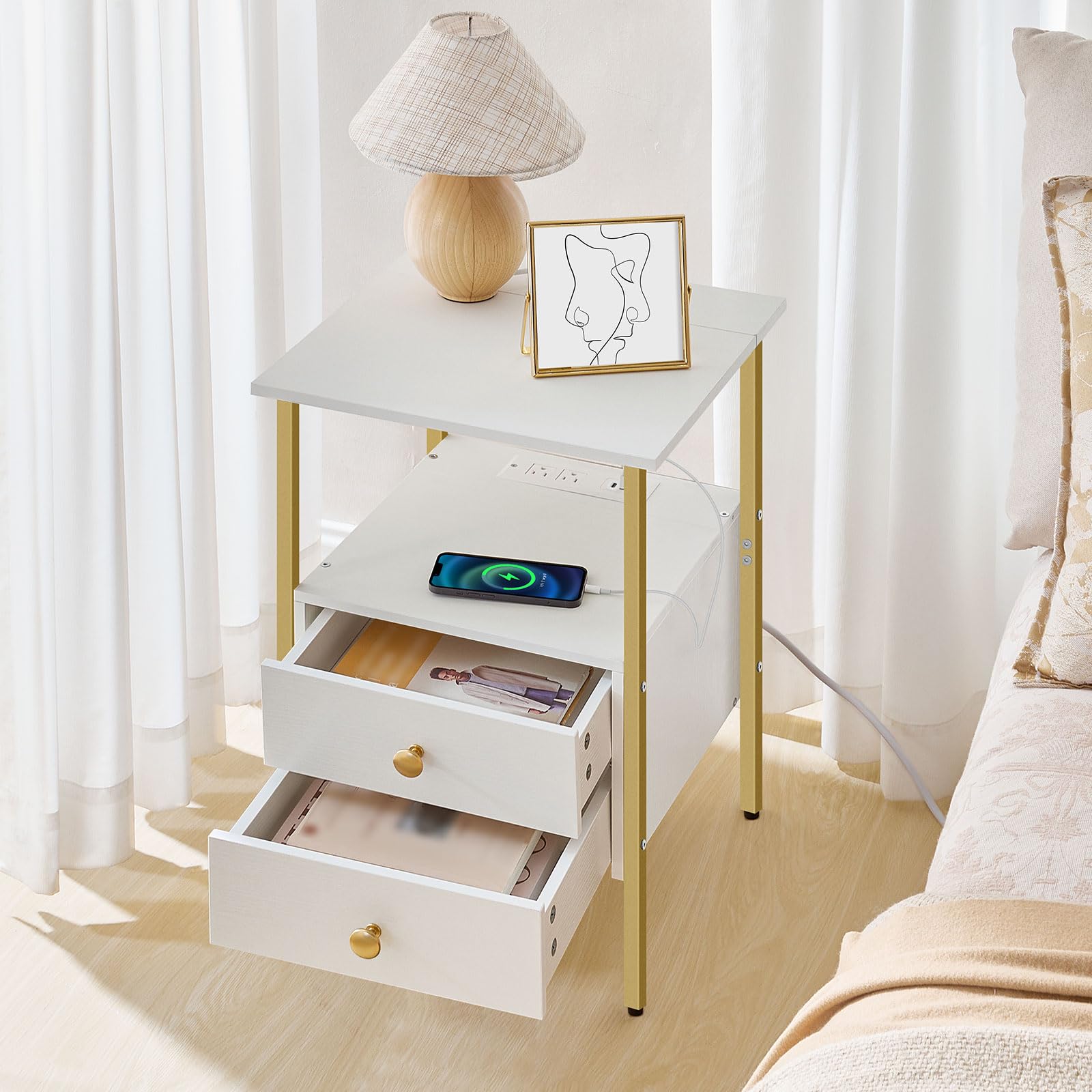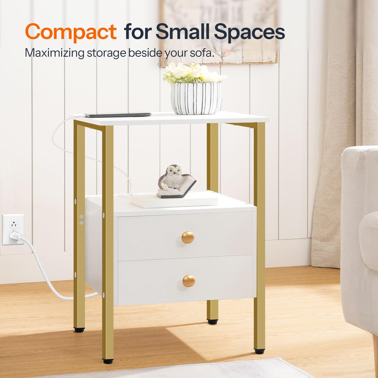 HOOBRO Side Table with Charging Station & 2 Drawers & USB Port & Type-C Port