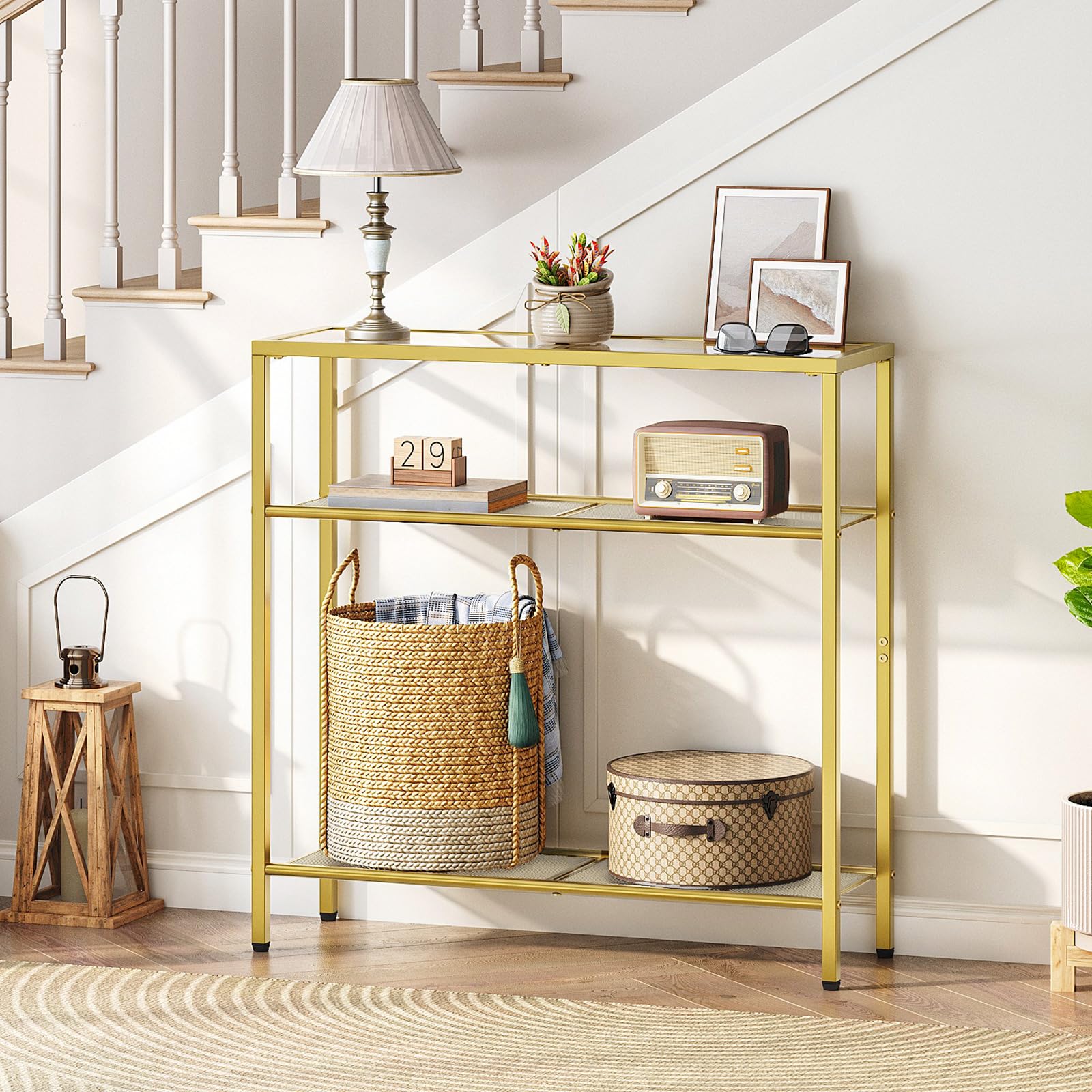 HOOBRO 29.5-inch Gold Triple Tempered Glass Narrow Console Table