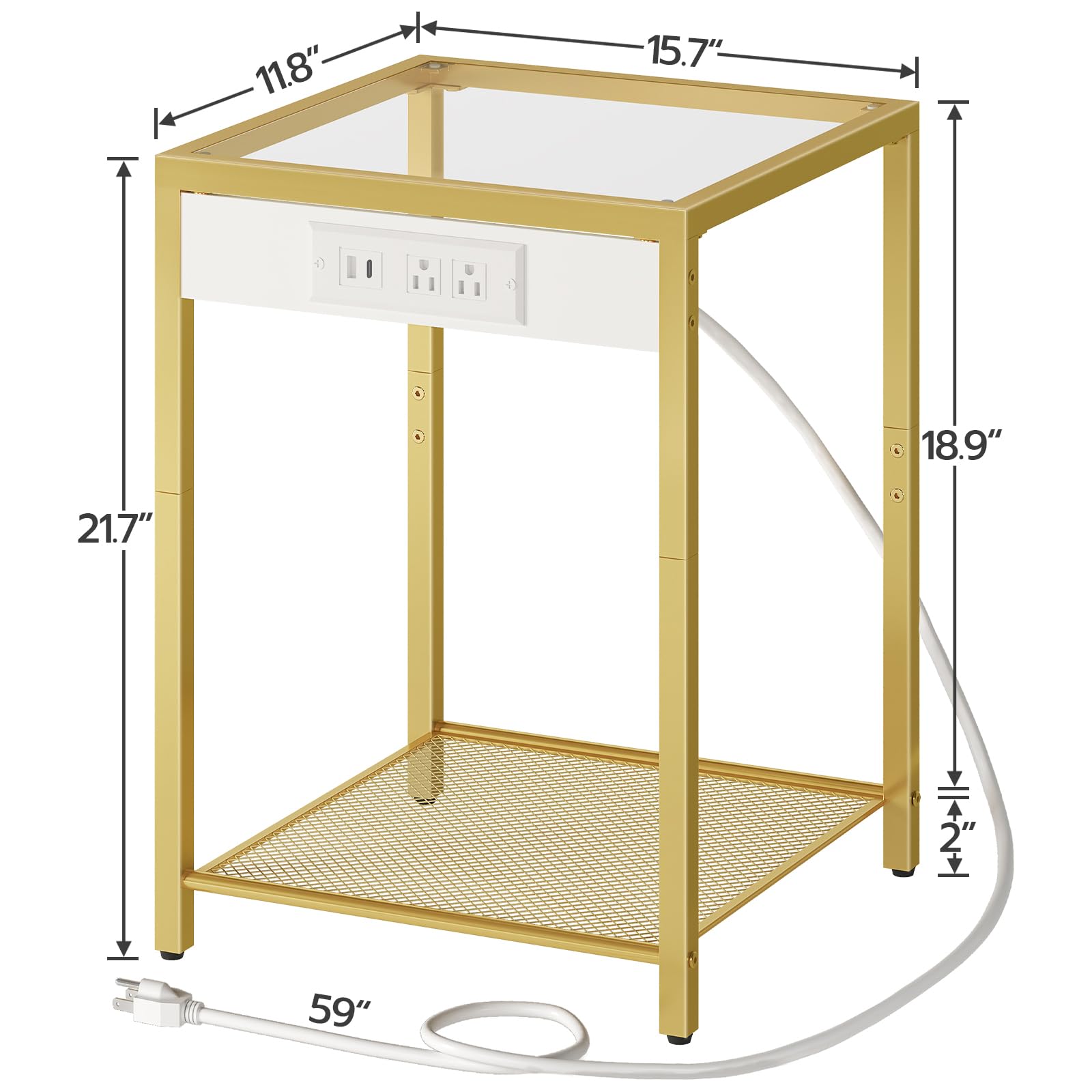 - Beneficial Glass End Table: I am a small side table with a charging station including 1 USB port, 1 Type-C port and 2 three-hole outlets and can satisfy your diversified charging needs. I am able to help you charge your phone, tablet, earphones or other mobile electric devices simultaneously, keeping you away from the worries of low power or no power strip available when you do your work or household chores