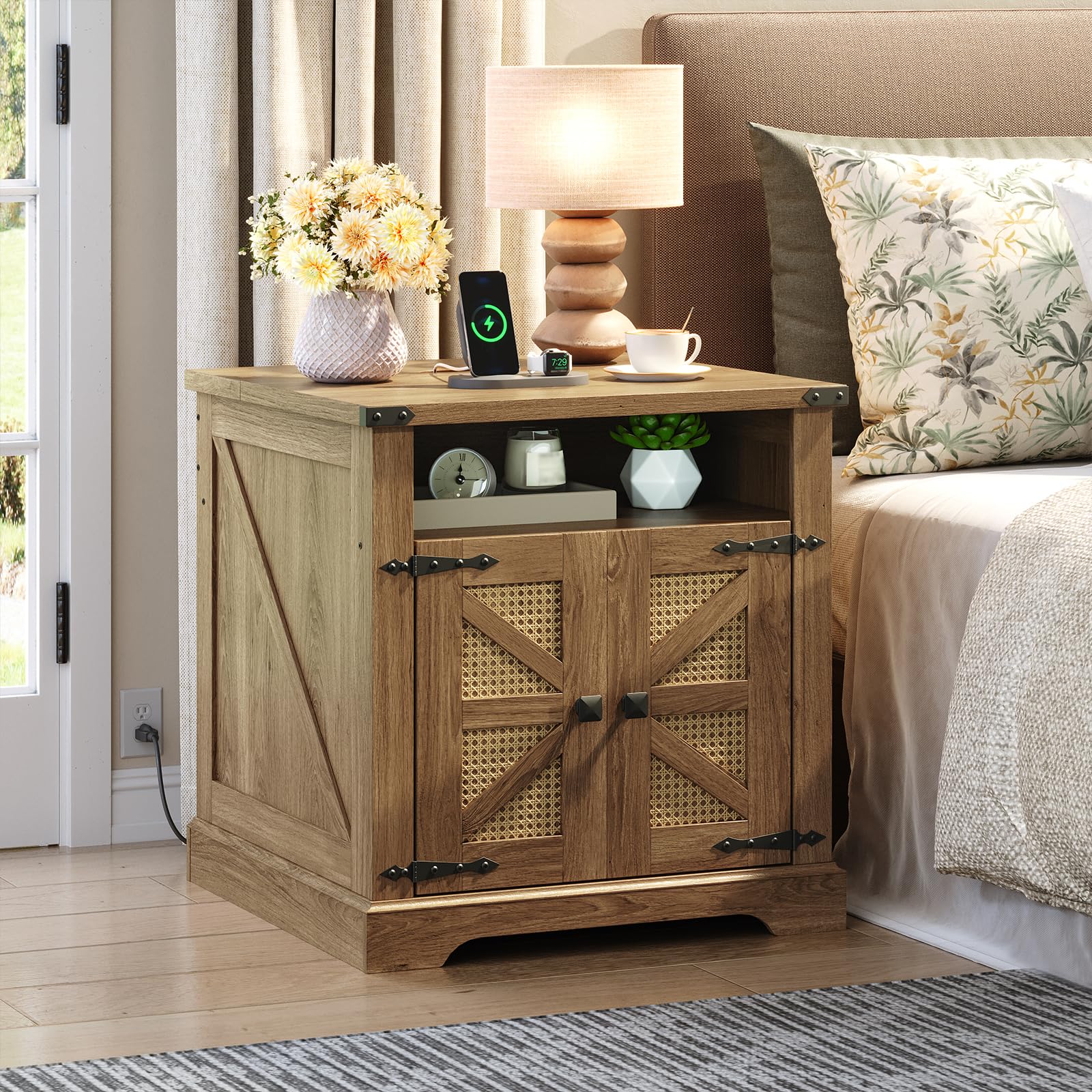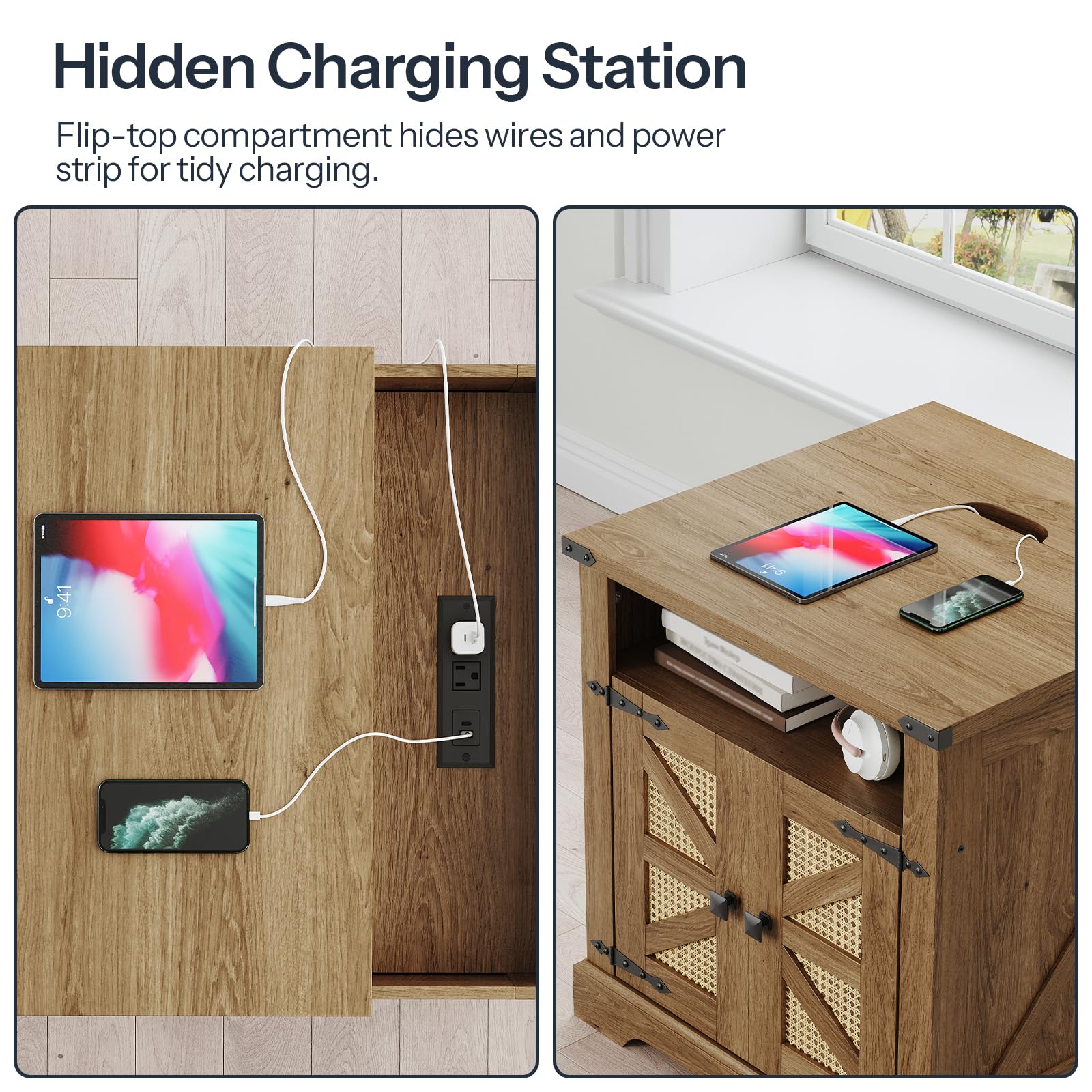 HOOBRO Farmhouse 23.6" Large End Table & Nightstand with Charging Station