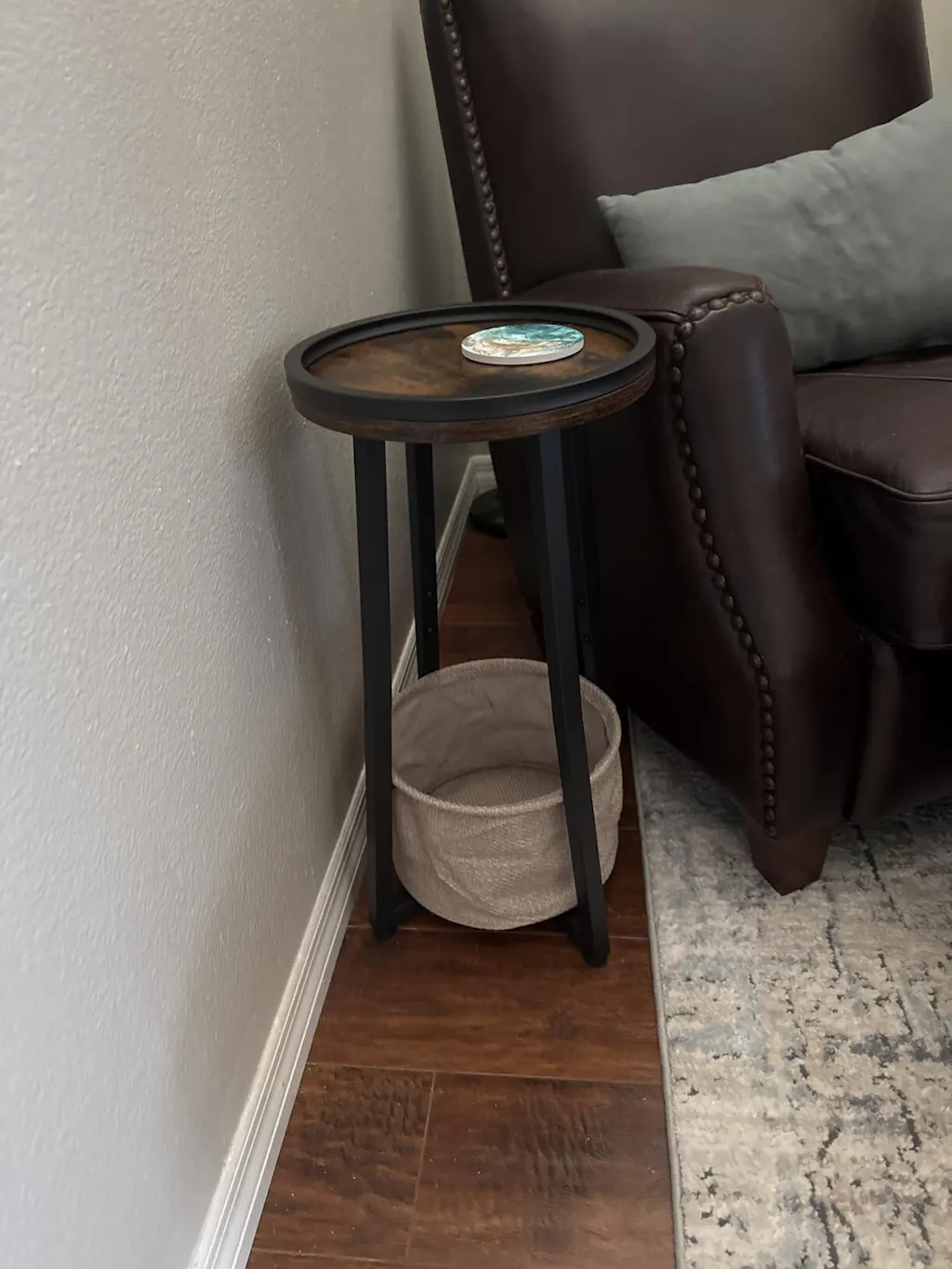 I needed a small size table to go next to a recliner that sits in my office. I needed something to be sturdy and have a good quality base to it, something easy to put together, and something that would match the interior of my office.