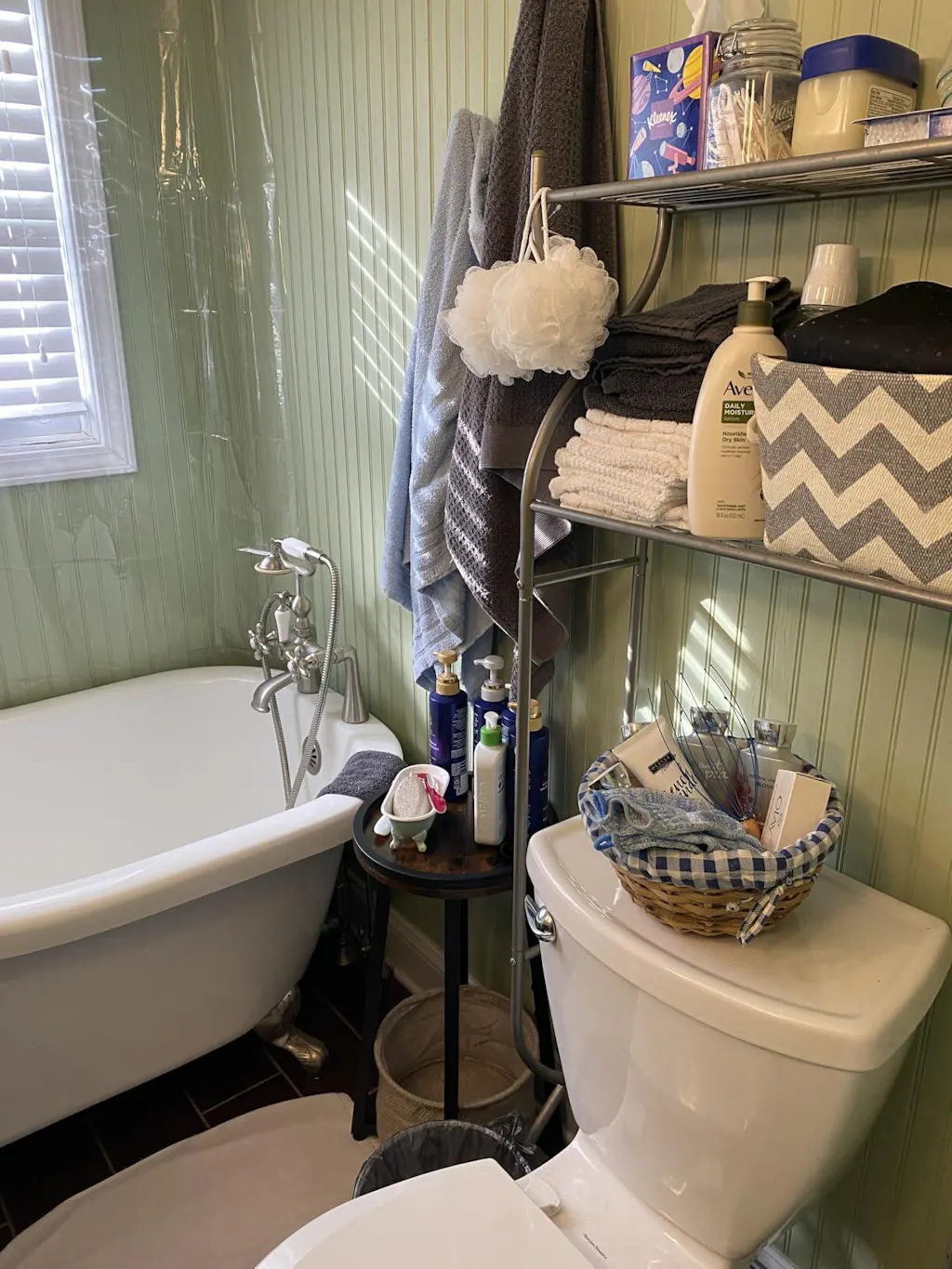 I bought this to use as a plant stand in my guest bedroom. I really like it! It's perfect as a plant stand, or as an end table if you have a small space. The basket on the bottom is much more brown than it appears. I expected it to be more of a cream or off white. It's small, as expected, but I was able to roll an blanket up and store it there. But I like it none the less!