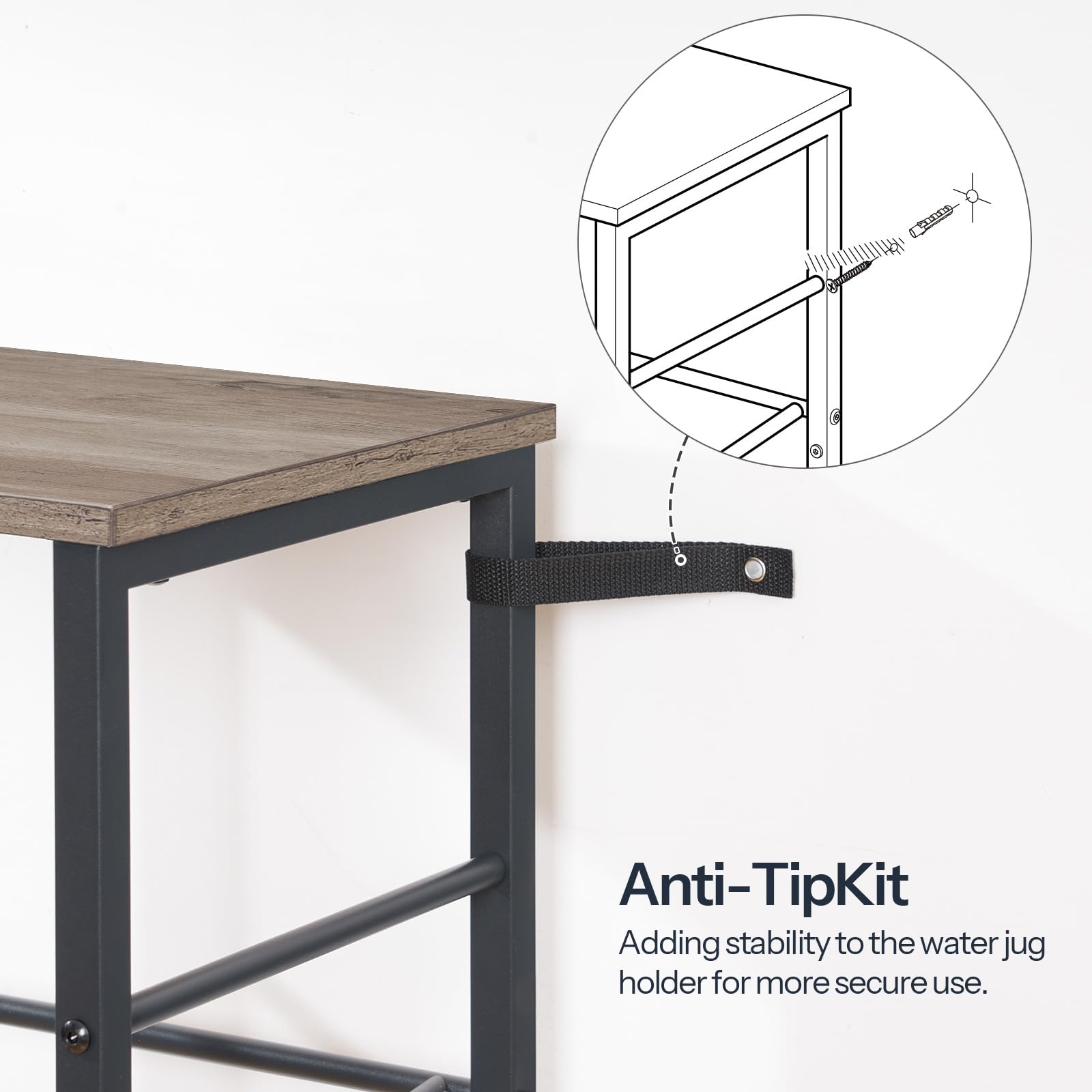 Premium Water Bottle Holder: This water dispenser is crafted from durable metal and particleboard, featuring an X-shaped metal reinforcement bar at the back and adjustable feet for enhanced stability. The dispenser can support a maximum weight of 231 lbs, ensuring stability and reliability.