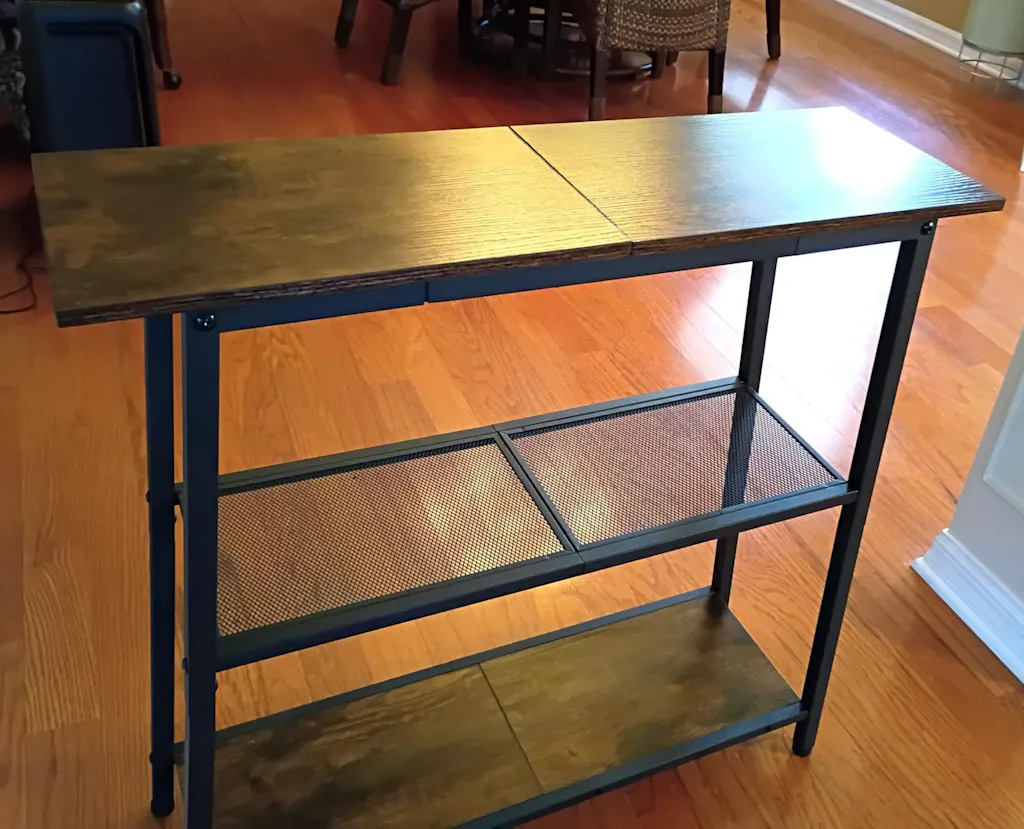 This narrow console table from HOOBRO is a winner! First, putting it together was shockingly easy. No advanced degree, no engineering internship, no calling my teenager to see if she can understand the diagrams. Just me, a few parts, and a pleasant sense of accomplishment.It has plenty of room for organization, which is great because I LOVE owning tiny things and then pretending they serve a purpose. Everything fits, everything looks tidy, and I get to feel like a functioning adult.The table is sturdy, too -- no wobbling, no threatening noises, no ※don*t breathe near it§ energy, despite being super lightweight and easy to cart around the house. It*s inexpensive, which is a huge plus because I enjoy sturdy furniture that doesn*t demolish my bank account.Now, about that mesh metal middle shelf ... at first I disliked it. I thought it was weird. I have now realized, however, that the problem wasn*t the shelf, but the fact that I obviously don't know fashion. It*s clearly chic and I was wrong to doubt it.The ※wood§ surfaces are absolutely particle board; they're not fooling anyone into thinking they*re solid wood, and that*s fine! It's not priced like solid wood. We cannot have it both ways. I, for one, appreciate the honesty of flat-pack furniture that is what it is.Overall: cute, functional, easy, sturdy, budget?friendly. What more could a person ask for?