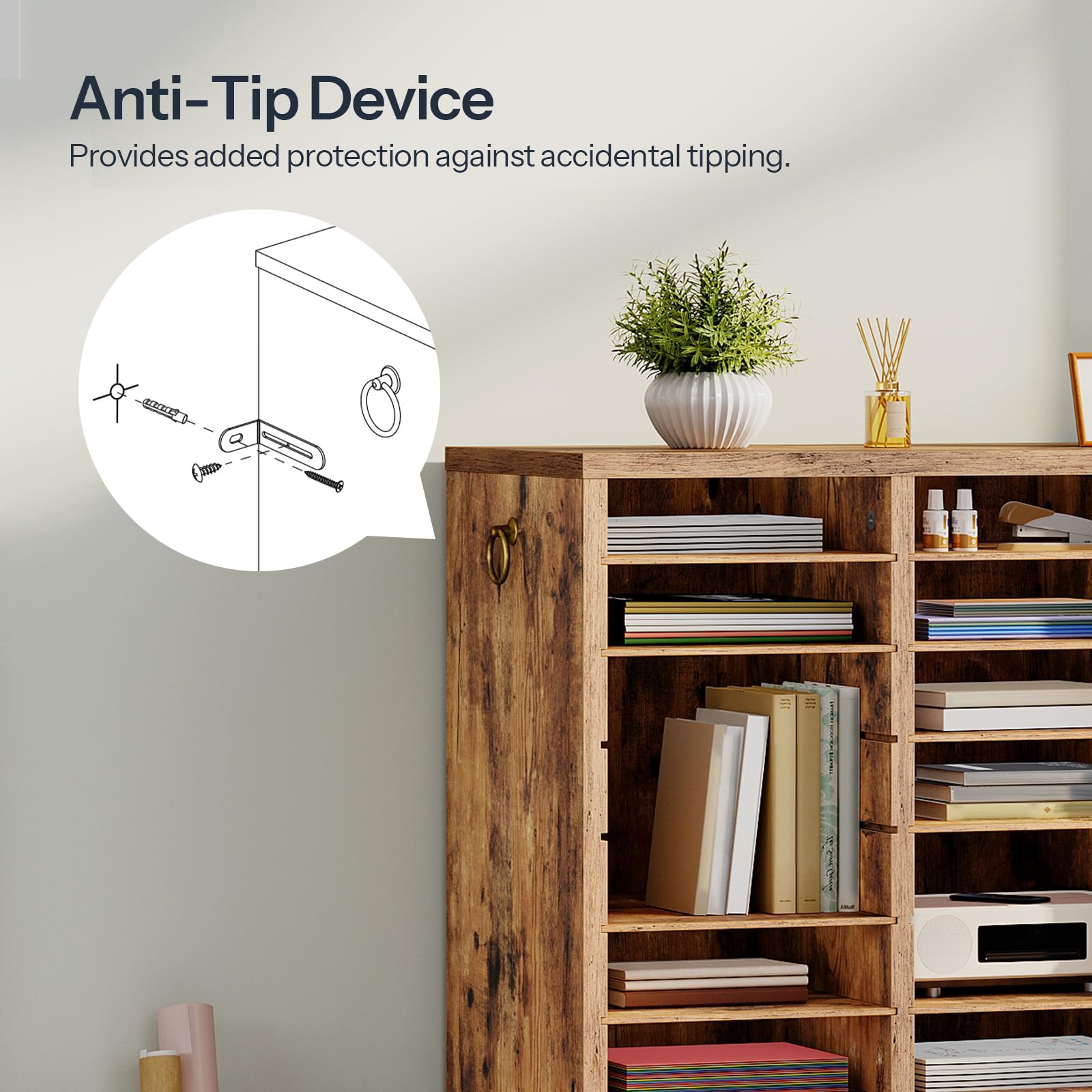 - Practical Pull Rings: This mail sorting assistant is made of particleboard, featuring good durability. Pull rings on both sides make every move easy, and the bulky problem of plate furniture no longer exists. One more design and one less worry