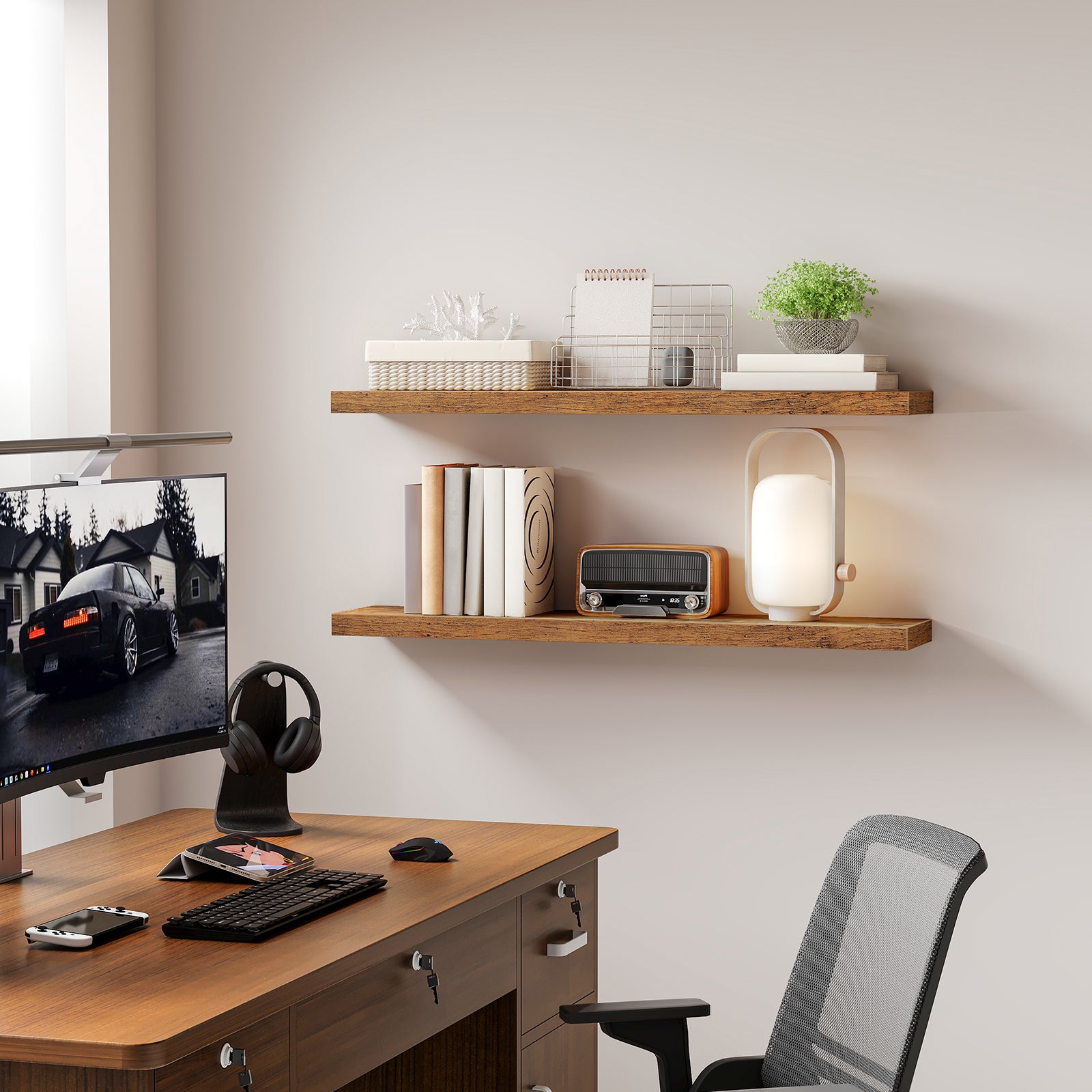 - Random DIY: Arrange and combine wall shelves freely according to your preferences, such as staggered left and right, stacked vertically, or in a tiered style. Using more wall shelves allows for richer and more personalized wall layouts, making even small spaces visual focal points and showcasing a unique style.