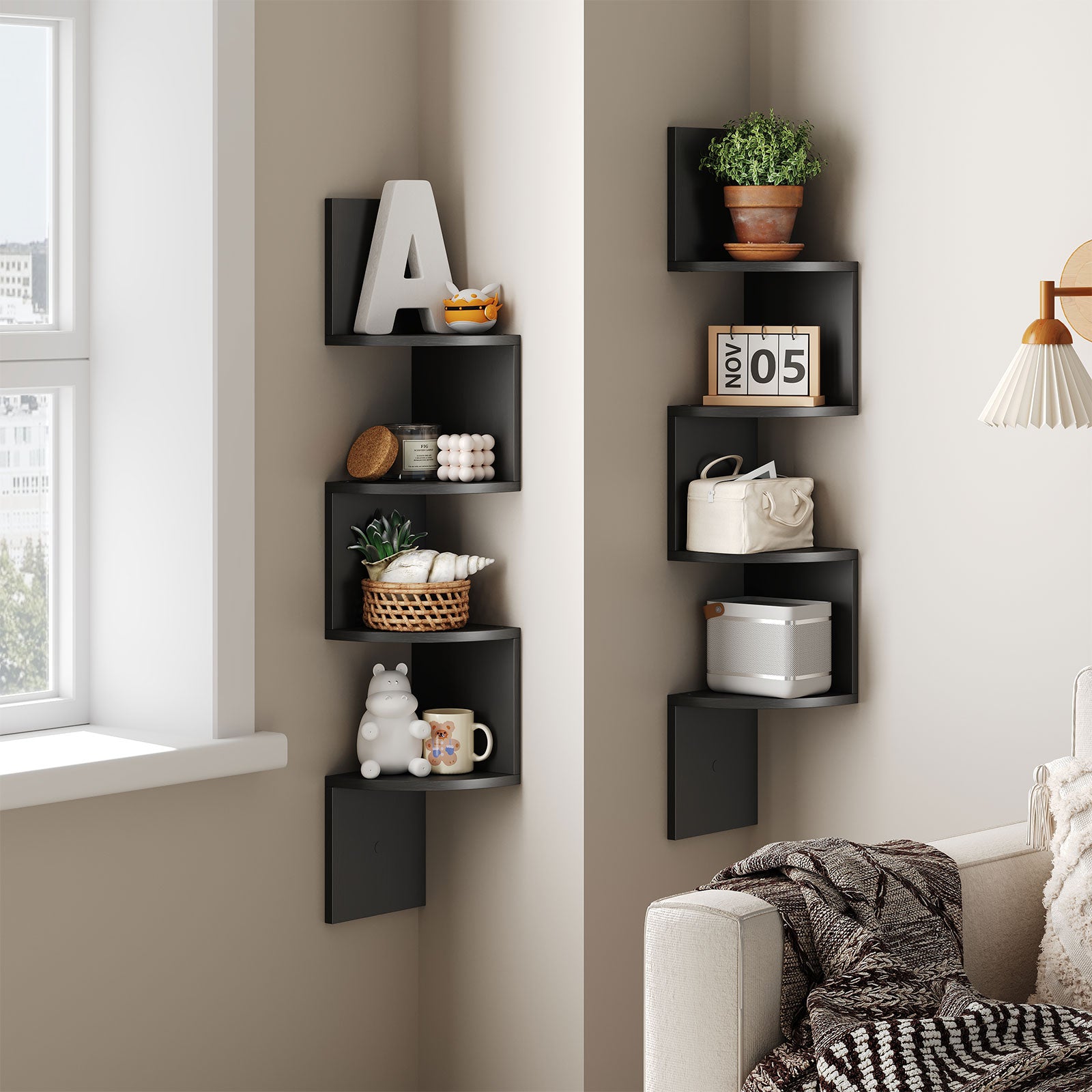 - Versatile Duo for Flexible Configurations: This 4-tier corner wall-mounted shelf offers flexible configurations to perfectly adapt to your needs. Whether used for display in the living room or bedroom, or for storage in the study, this 2-piece floating corner shelf set creates a more organized space and enhances your quality of life.
