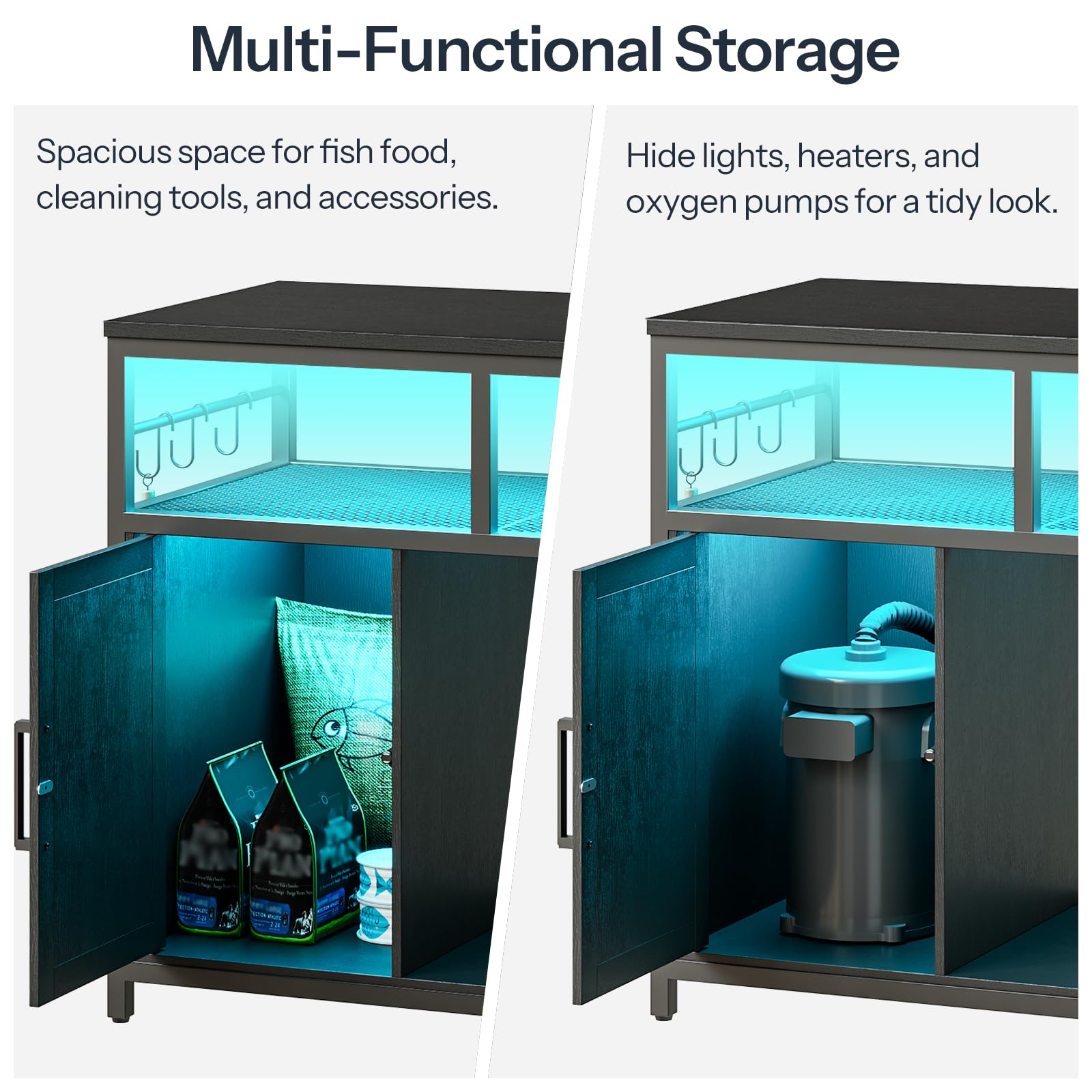 -The cabinet provides hidden storage for your aquarium accessories.