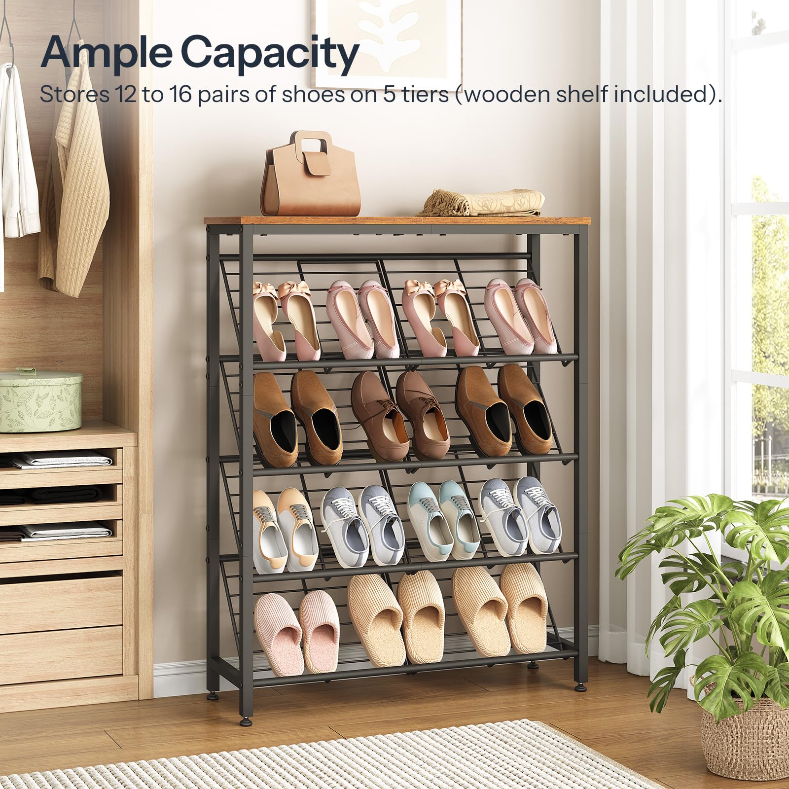 HOOBRO 5-Tier Shoe Rack Organizer Holds up to 12-16 Pairs of Shoes