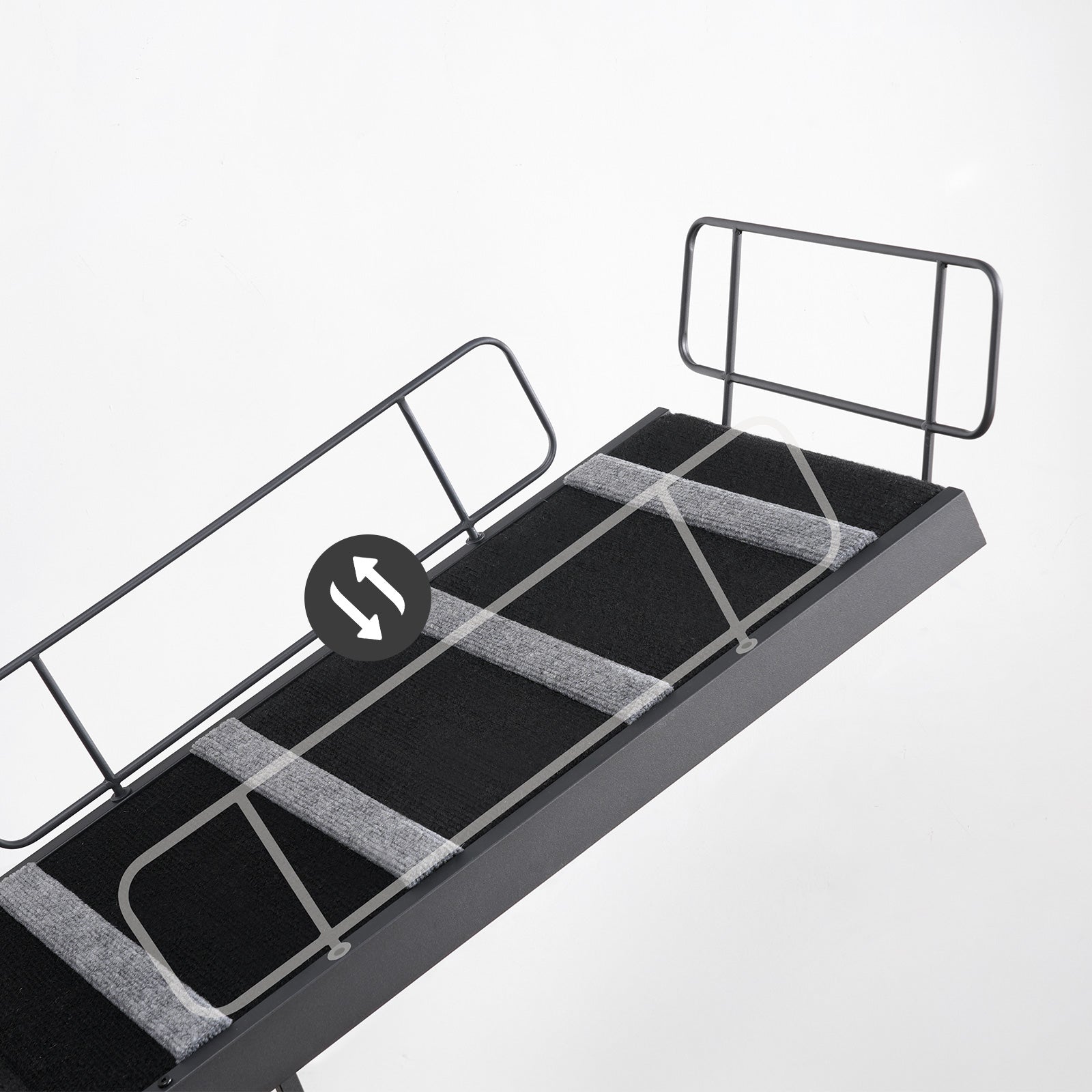 The two side rails are reversible, better guiding your dog to their destination.