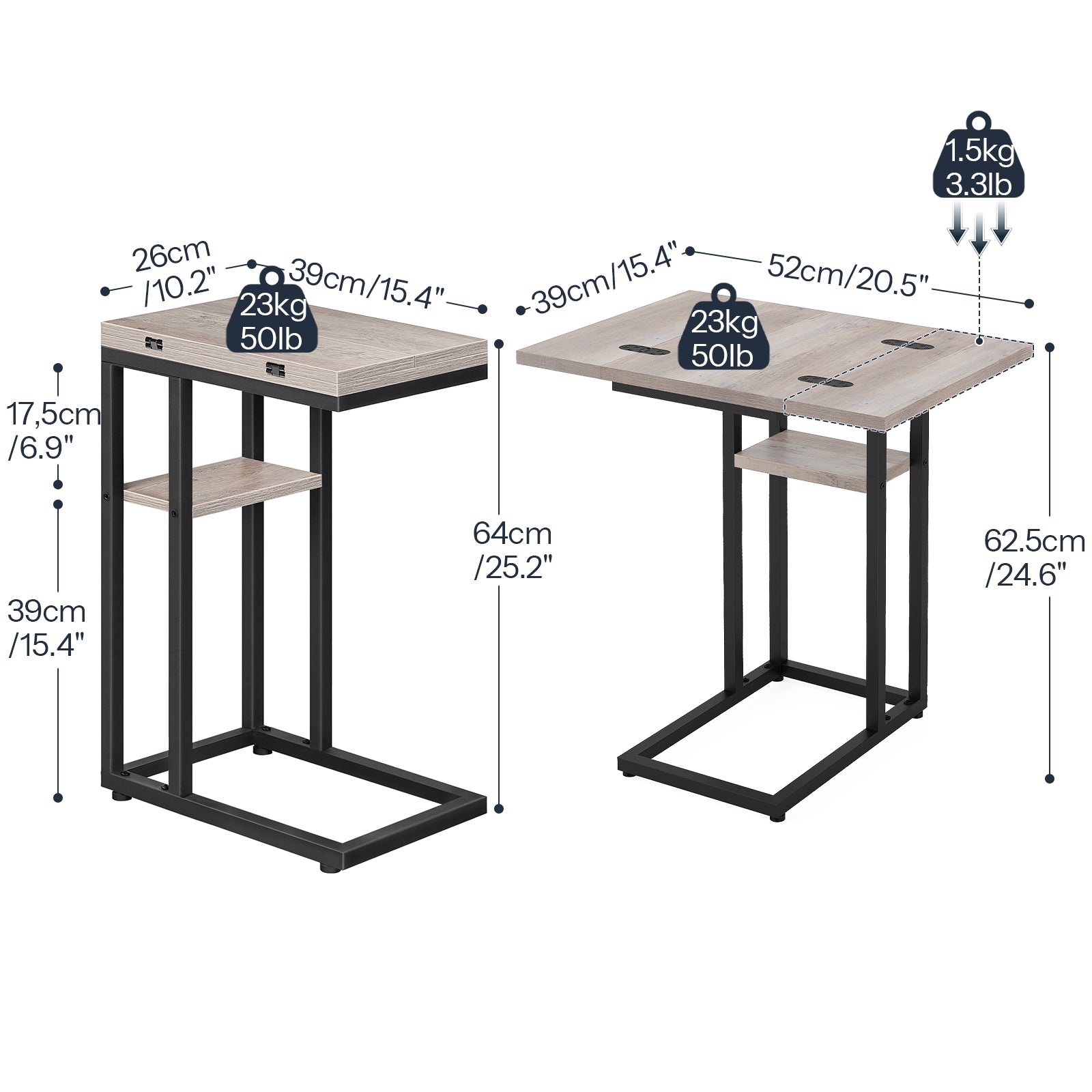 - Foldable Tabletop: Worried about a small desktop? This C-shaped side table features a foldable expandable panel, unfolding to 15.4 inches (length) x 20.5 inches (width), easily meeting temporary storage needs. Fold it away when not in use for perfect storage in small spaces, offering flexibility and saving space.