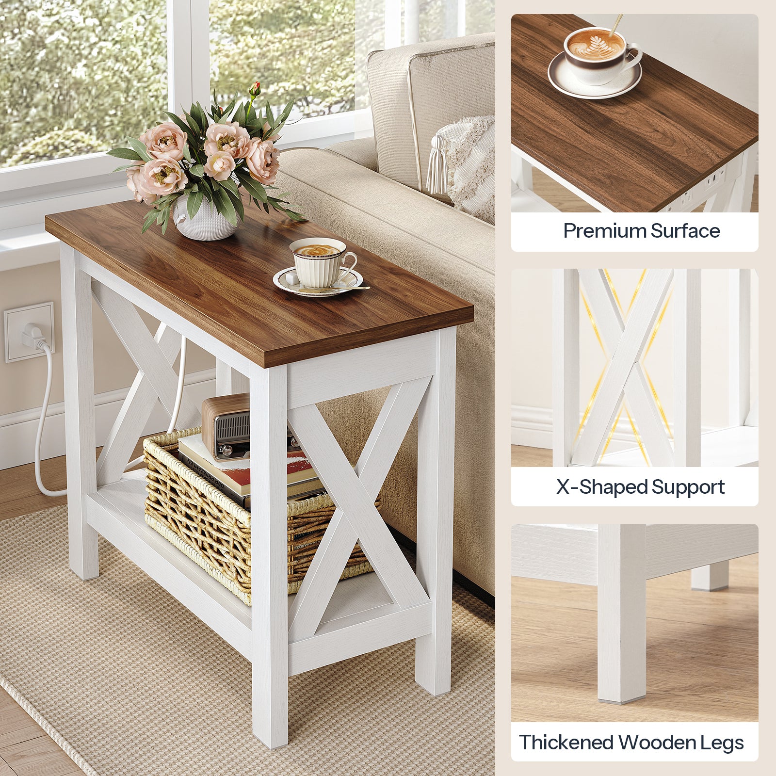 HOOBRO Farmhouse Style Narrow Side Table with Charging Station