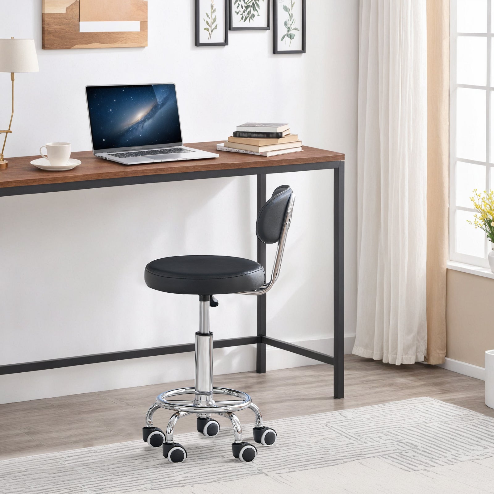 - Simple Appearance: The elegant lines combined with classic black allow this drawing chair to blend seamlessly with various décor styles. Its practicality and aesthetics make it a pleasing addition to any home office, kitchen bar, or studio.