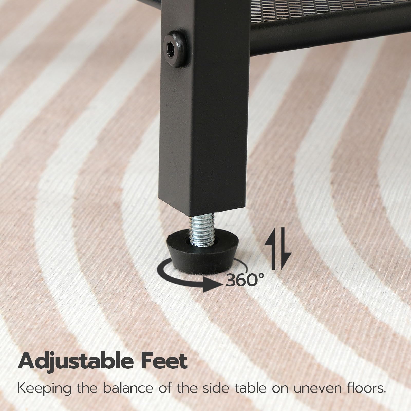 - Durable and Practical: Crafted from quality particleboard and metal, the tabletop and adjustable shelf hold 44 lb and 22 lb respectively, while the mesh shelf supports 11 lb. Four adjustable feet provide stability and protect floors from scratches.