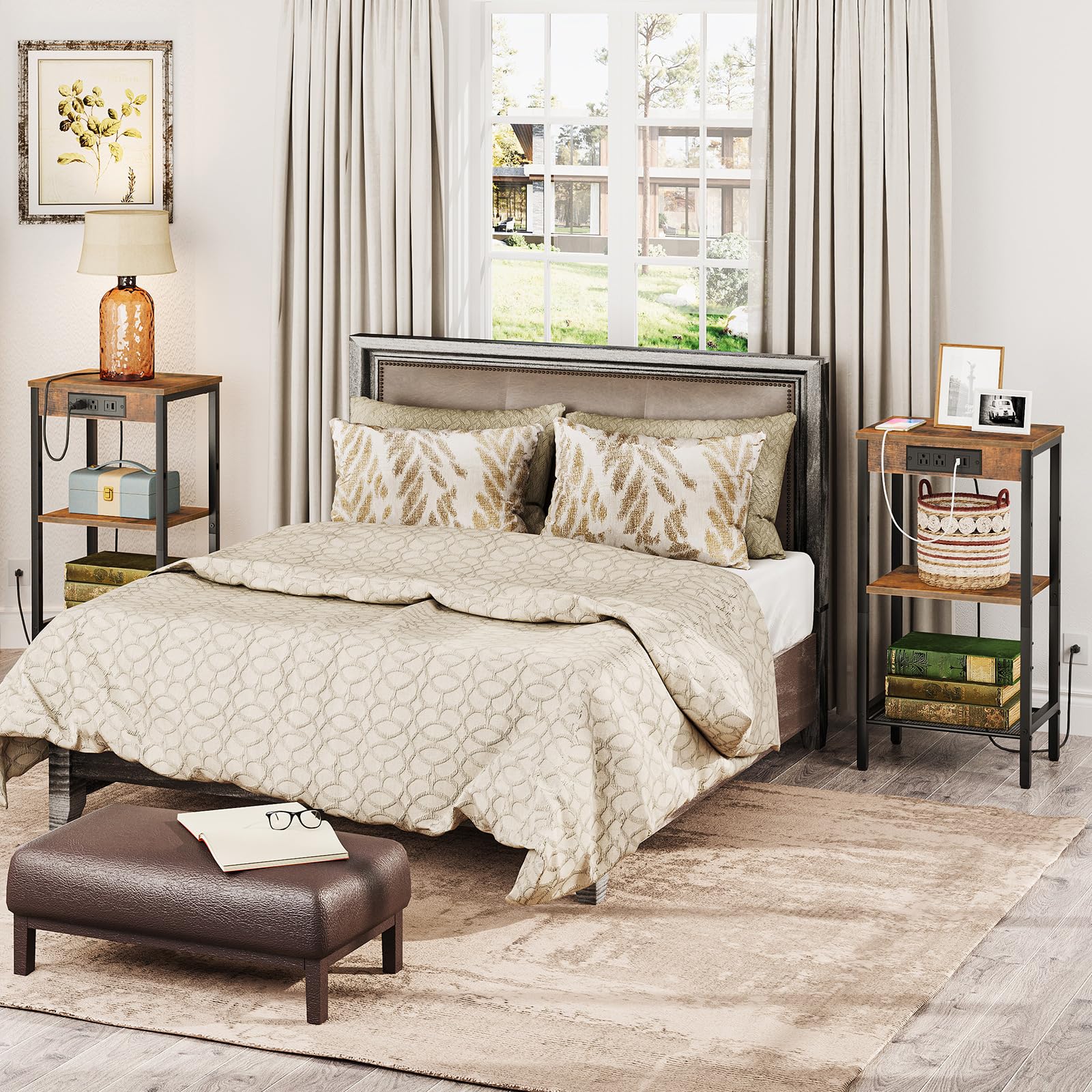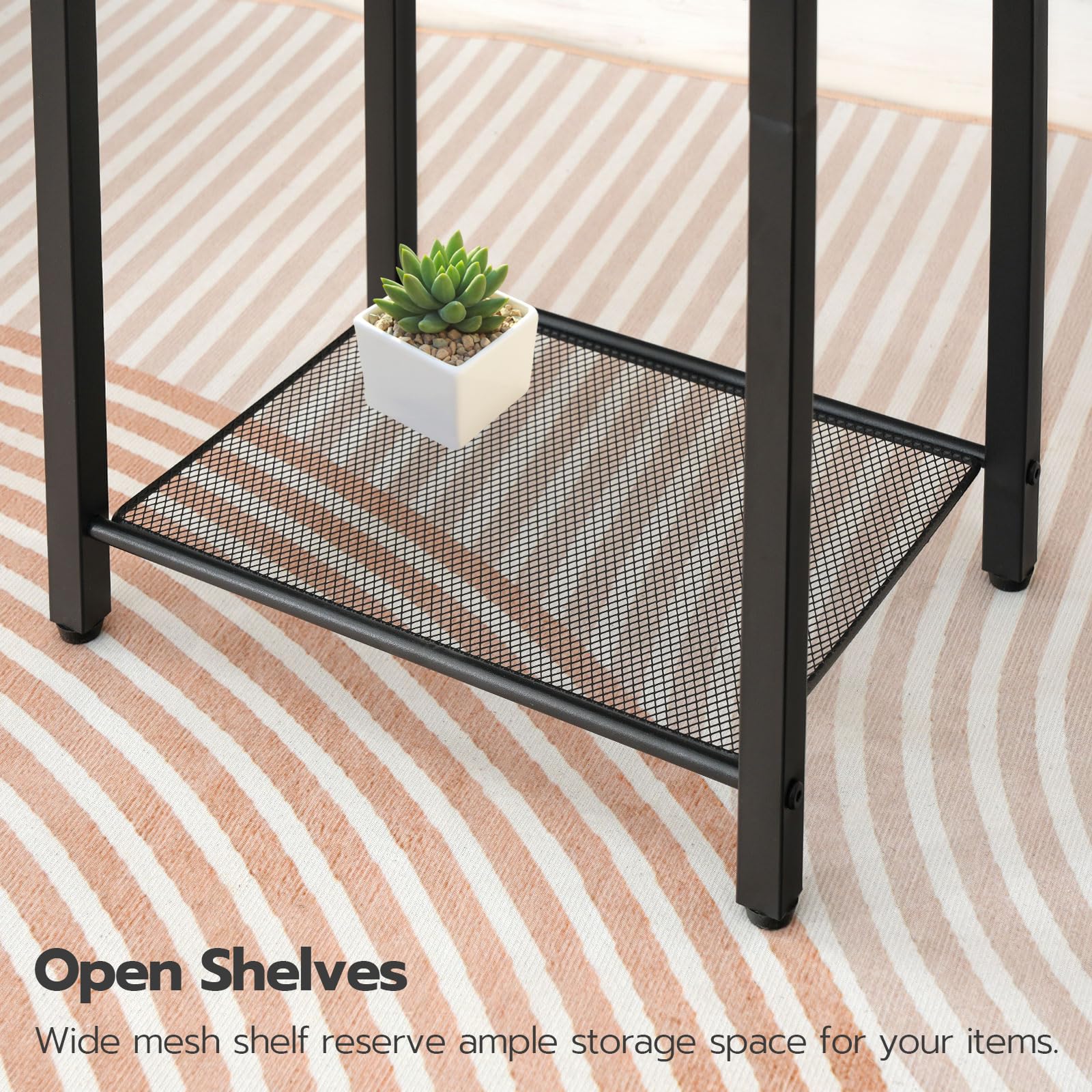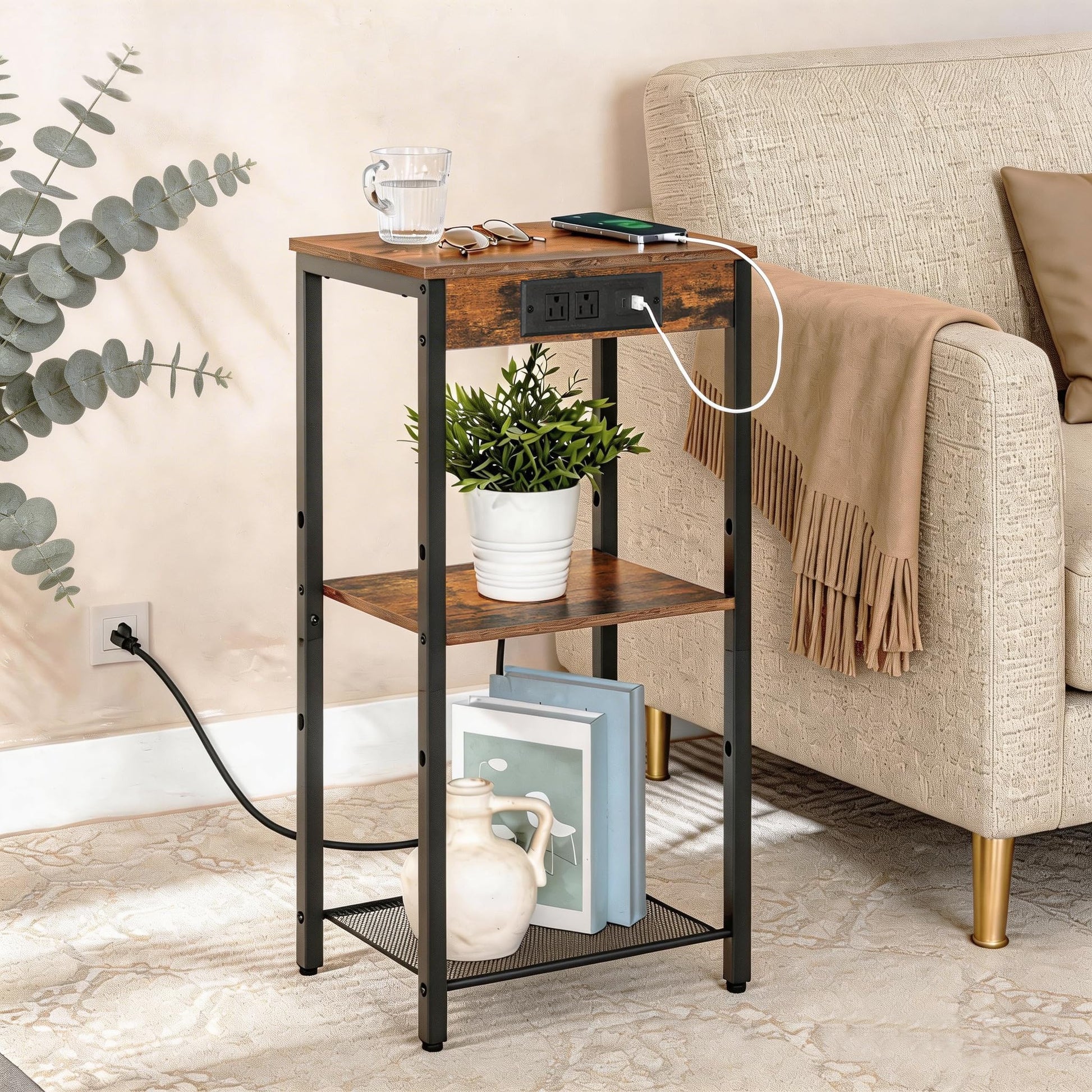 - Convenient Charging Station: Equipped with 2 AC outlets, 1 USB port, and 1 Type-C port, this tall end table lets you charge up to 4 devices at once. The 4.9-ft power cord keeps your electronics within easy reach, eliminating cable clutter and making instant charging effortless.