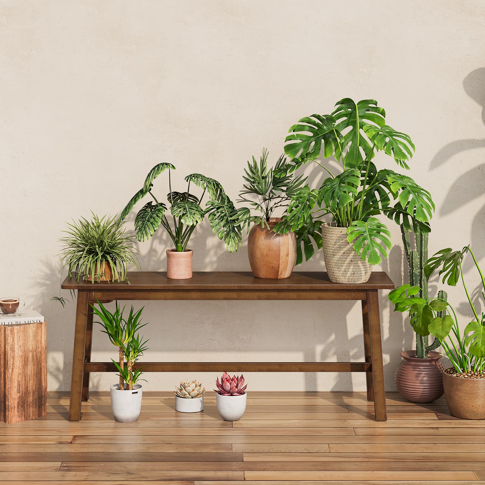 - Excellent Stability: The table bench in a trapezoid can stand more stable with reinforced bottom crossbar for enhanced support. Four rubber foot pads can effectively prevent slipping and protect the floor or carpet from being scratched