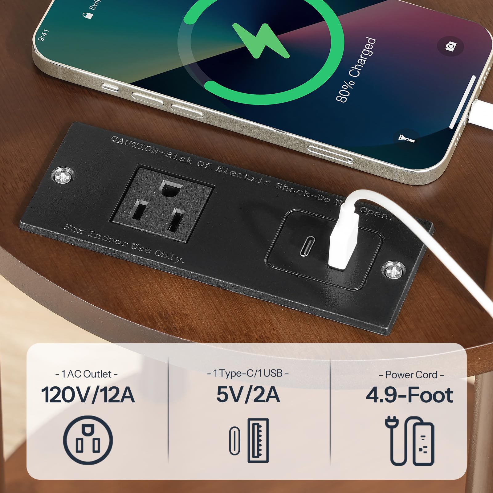 - Handy Charging Station: The side table features a charging station with an AC outlet, a USB-A port, and a Type-C port with a 4.9-foot-long power cord for you to conveniently charge devices like phones, headphones, and lamps by your bed or couch, offering both convenience and flexibility