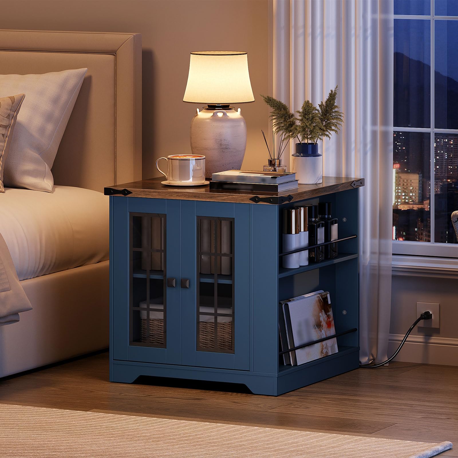 - Hidden Charging Station: Say goodbye to messy power cords! The farmhouse side table features a concealed wiring design for a tidy desktop. The power strip with 2 AC outlets, 1 USB port, and 1 Type-C port meets all your charging needs efficiently and conveniently