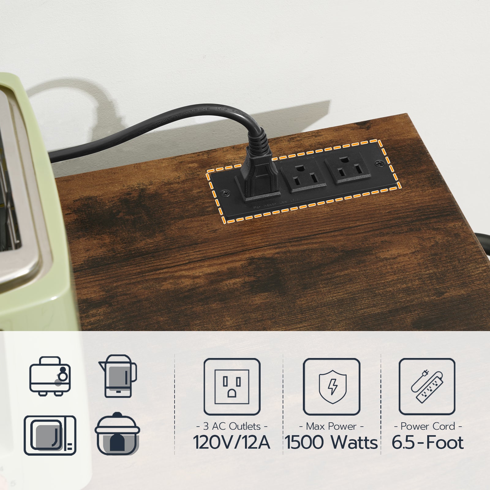 - Kitchen Island with Power Outlet: The kitchen island cart with charging station incorporates a handy socket with 3 AC outlets and a 6.56-foot long power cord, facilitating electrical access during cooking. No power shortages here, boosting your kitchen productivity