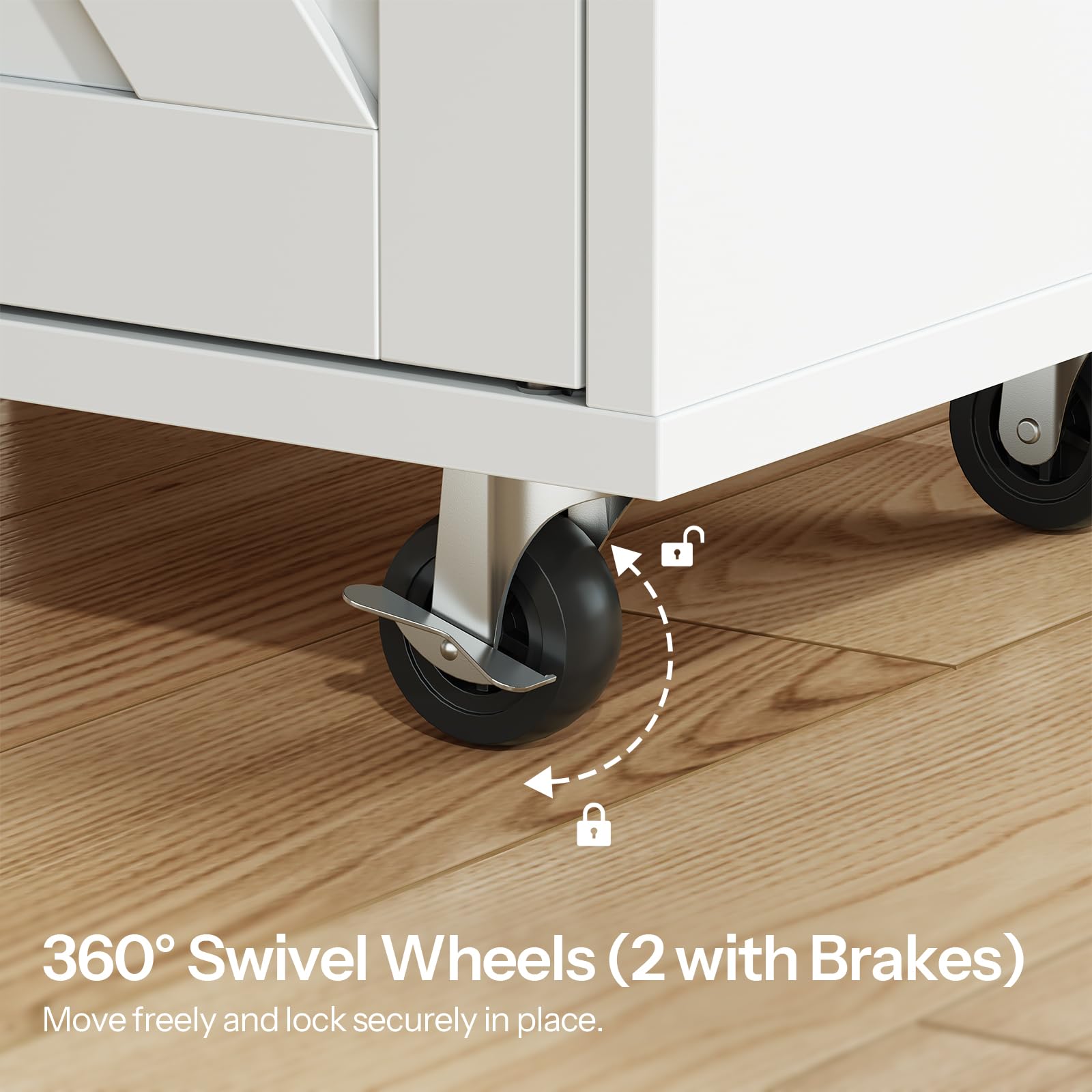- Lockable Swivel Wheels: Our 3 drawer lateral file cabinet is fitted with 5 sturdy, flexible casters that allow you to move it anywhere effortlessly; 2 diagonal wheels can be locked, while the center wheel provides additional support, eliminating the hassle of transporting files