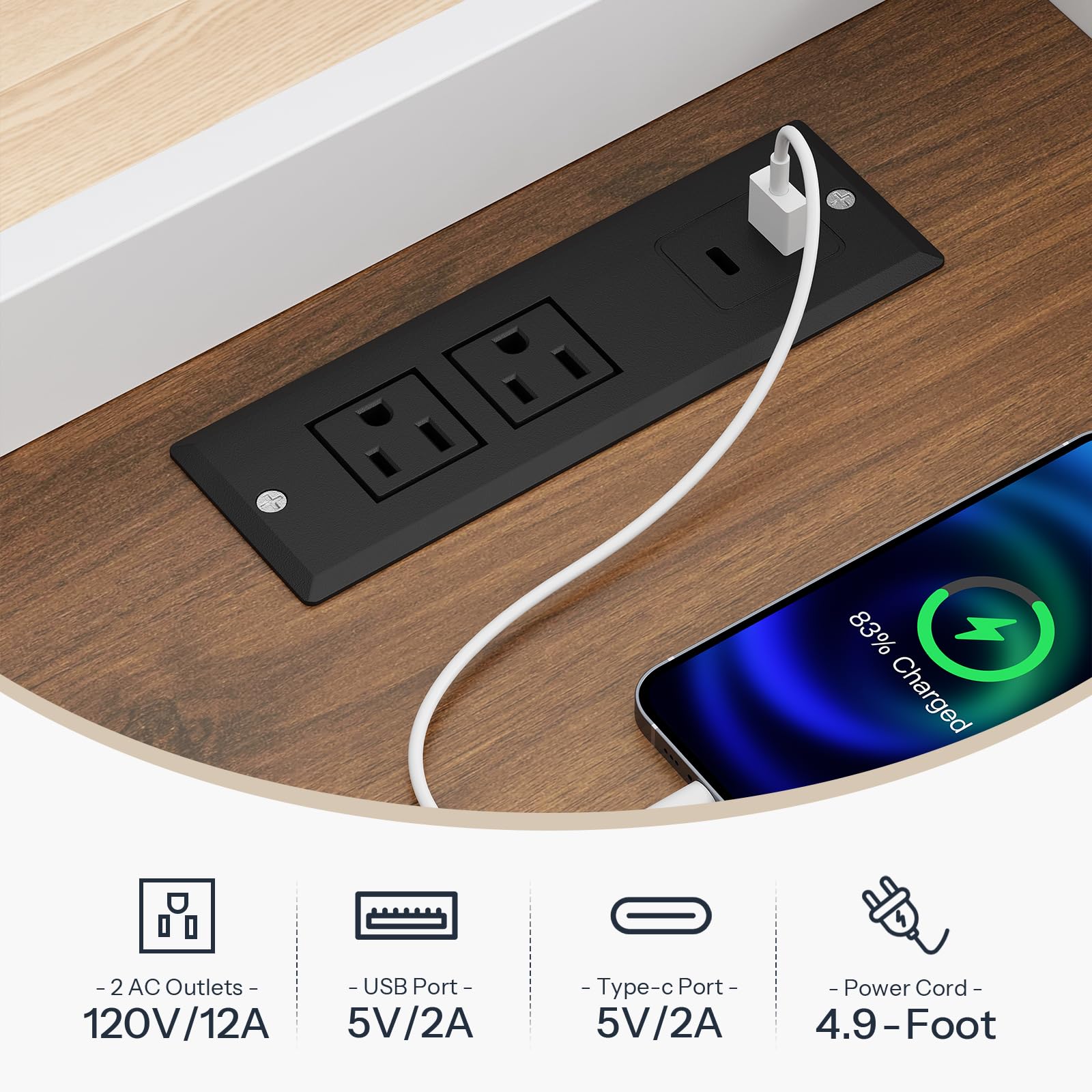- Multi-Port Power Strip: Equipped with a power outlet including 2 AC ports, 1 USB, and 1 Type-C port, along with a 4.9-foot power cord, this lateral filing cabinet enables you to simultaneously charge your printer, smartphone, tablet, laptop, and more