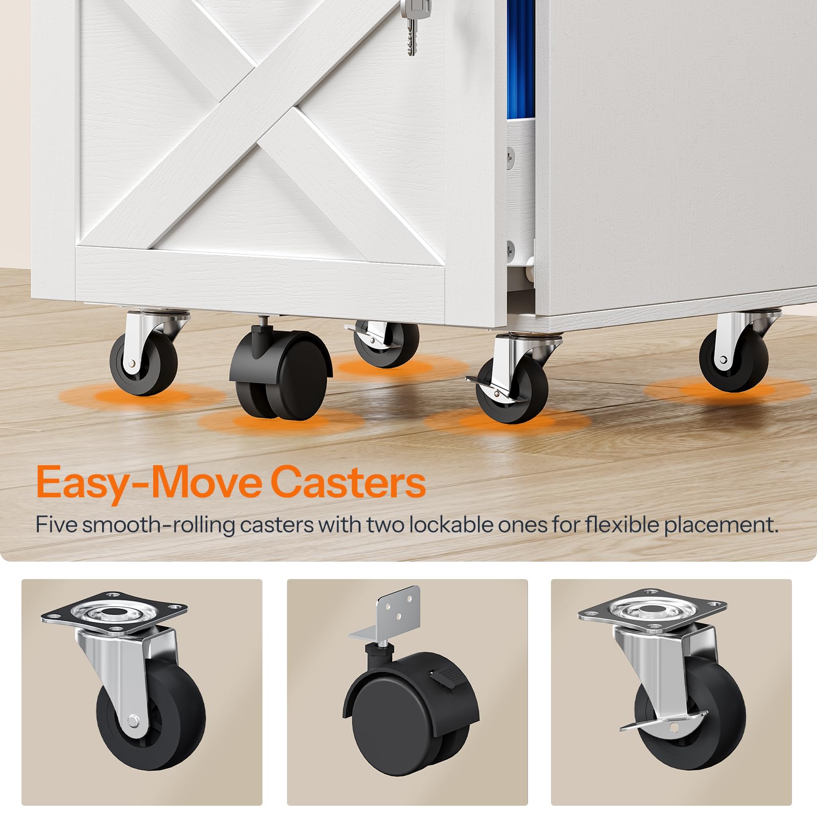 - Smooth Mobility - Easy to Move with Locking Wheels: Equipped with 5 smooth-rolling casters, including 2 lockable wheels, this mobile filing cabinet offers easy movement and stability. Whether you need to reposition it in your home office or move it to another room, the locking wheels provide added security and ensure the cabinet stays in place when needed.