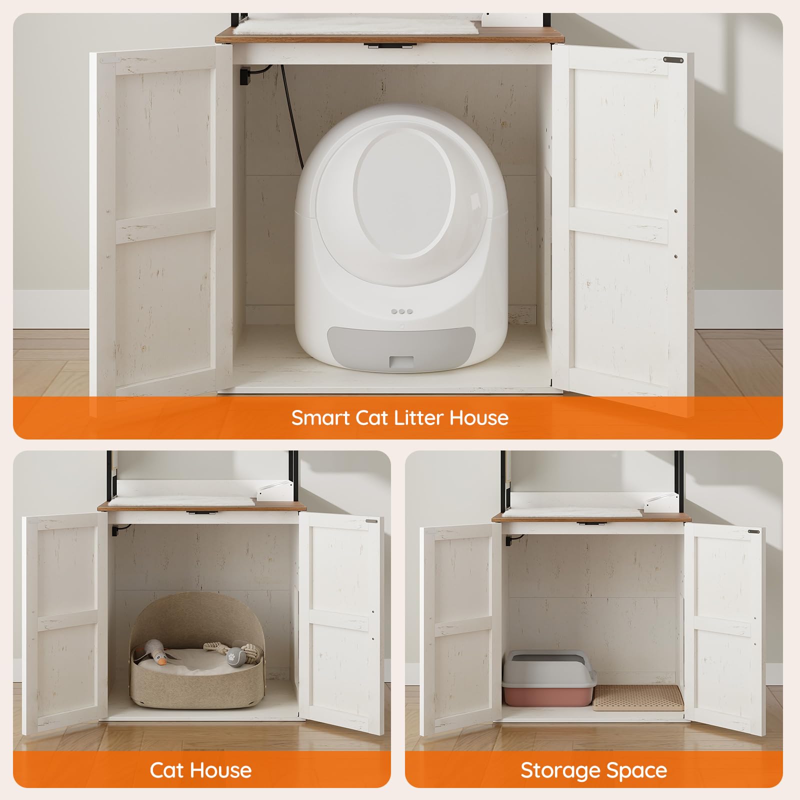 - Spacious Interior: This cat tower accommodates large-sized smart automatic litter box, providing your feline friend a roomy bathroom space. Can accommodate smart litter box up to 27"L x 24"W x 29.5"H. The wide top panel allows you to neatly arrange decorations, books, magazines or pet supplies