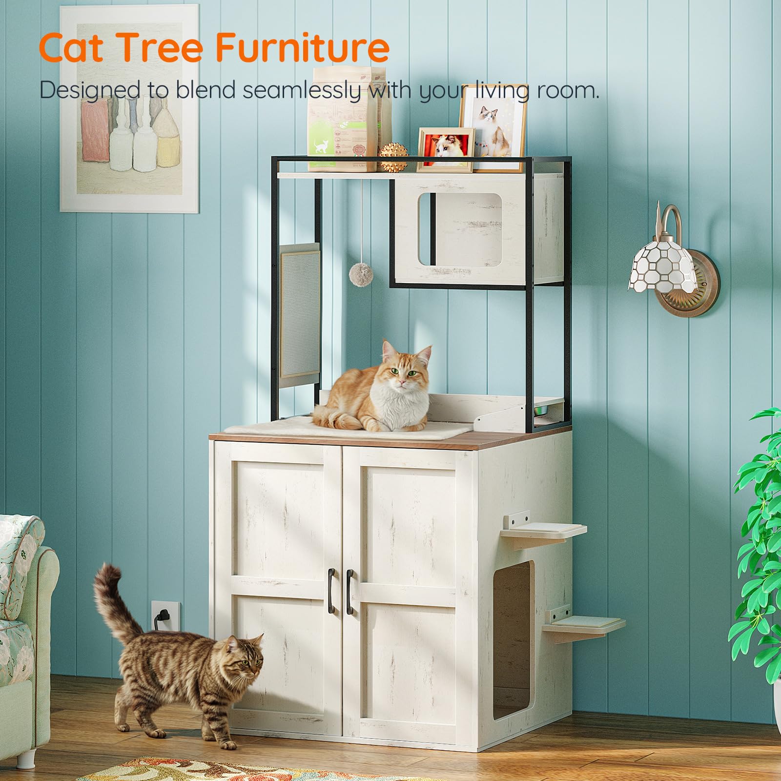 - Resting Area for Cats: The square cat tree with litter box enclosure features an open design, offering easy access for kittens. The plush mat delivers ultimate softness and lets your cherished feline companion enjoy the leisure time to the fullest