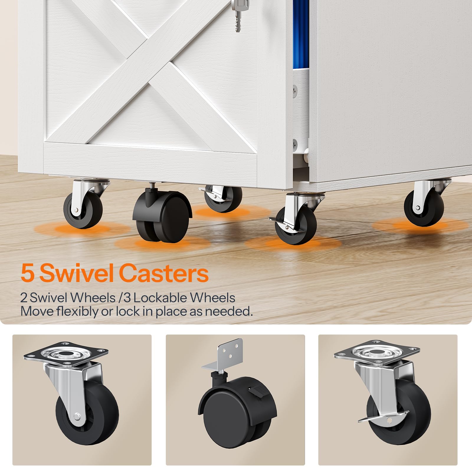 - Flexible Mobility & Secure Locking - Easy to Move & Stable: This mobile filing cabinet is designed for convenience. With 5 swivel casters, 3 of which are lockable, it allows you to move the cabinet effortlessly within your office space while providing stability when locked in place. Whether you need to reconfigure your workspace or keep the cabinet steady, it offers the perfect combination of mobility and security.