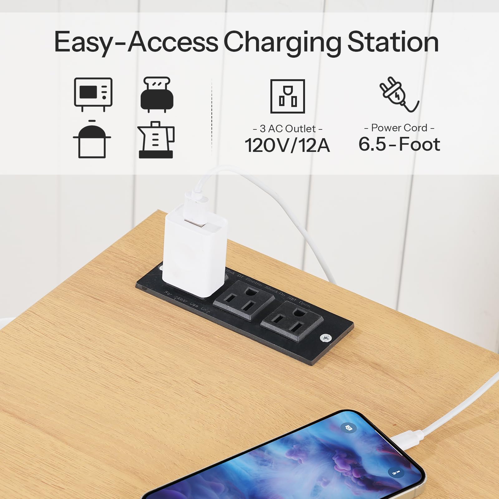 - Kitchen Island with Charging Station: This kitchen island with drop leaf features a power strip with 3 AC outlets and a 6.5-foot power cord, providing convenient access for small appliances such as mixers, coffee machines, and air fryers, making your cooking process more efficient