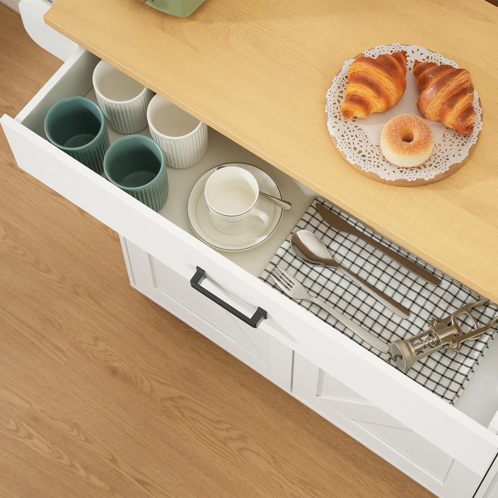 - Chic Farmhouse Style for Versatile Use: Crafted from premium particleboard, this farmhouse kitchen island with storage combines timeless rustic charm with lasting durability, making it an ideal choice for your kitchen that serves as a dining table, bar counter, or workspace to meet diverse needs